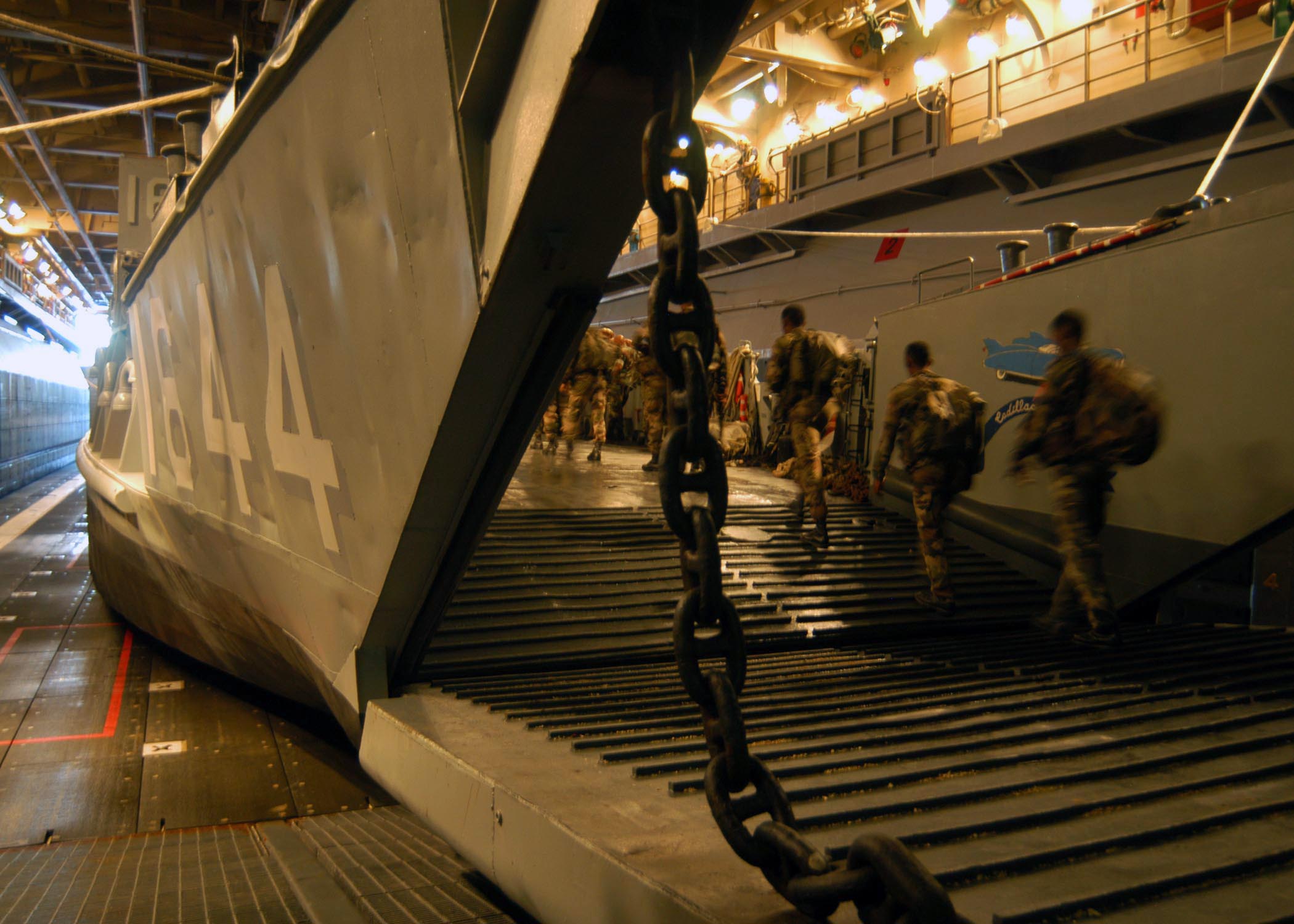 316k | Dutch personnel board LCU-1644 aboard the amphibious assault ship