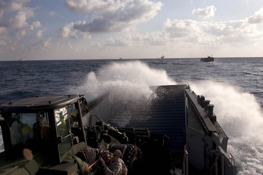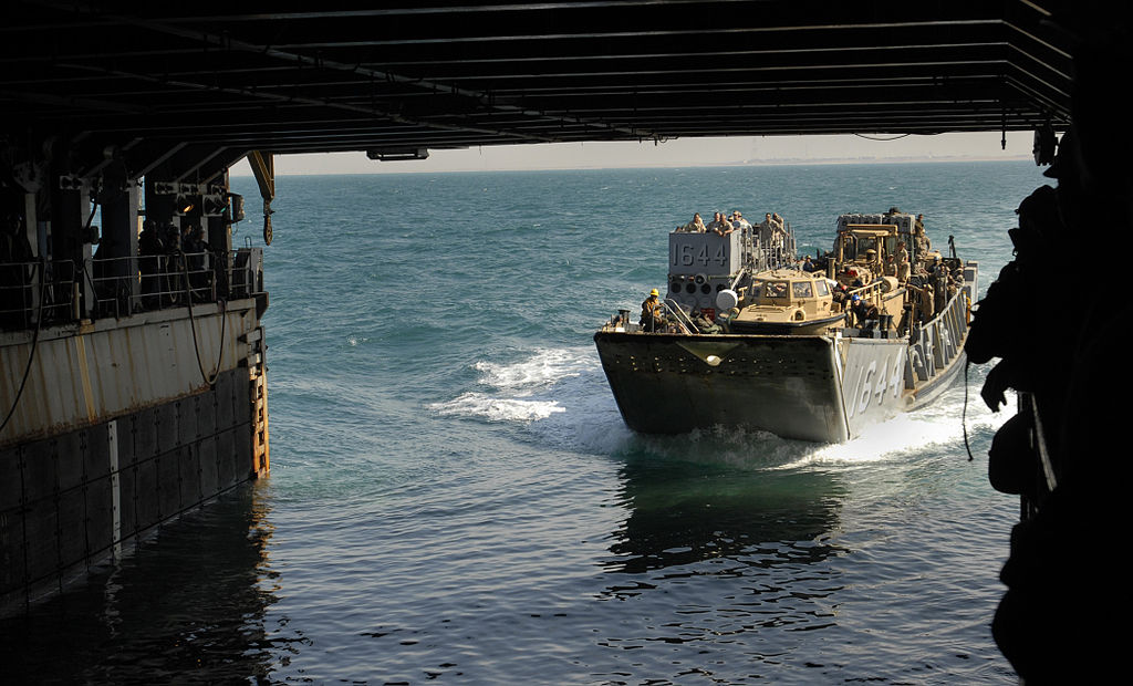 USS Whidbey Island carry Marines and vehicles with Golf Company, Battalion Landing Team, 2nd Battalion, 2nd Marine Regiment,