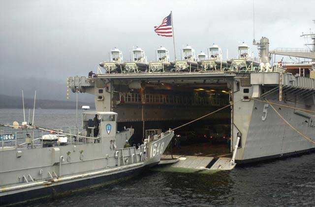 146k | LCU-1648 participates in a stern gate marriage with USS Harpers Ferry (LSD-49). Harpers Ferry is part of the Boxer Amphibious Ready Group and, with the embarked 13th Marine Expeditionary Unit (13th MEU), is deployed in support of maritime security operations and theater security cooperation efforts in the U.S. 5th Fleet area of responsibility. US Navy photo # 131116-N-TQ272-151 ARABIAN GULF (Nov. 16, 2013) by MC3 Mark El-Rayes. | Lee Wahler | |