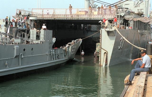 70k | LCU-1661 entering the well-deck of Pensacola (LSD-37) at Dubai during Desert Strom. | Photo by Antonio "Tony" Garcia LCU-1661 | |