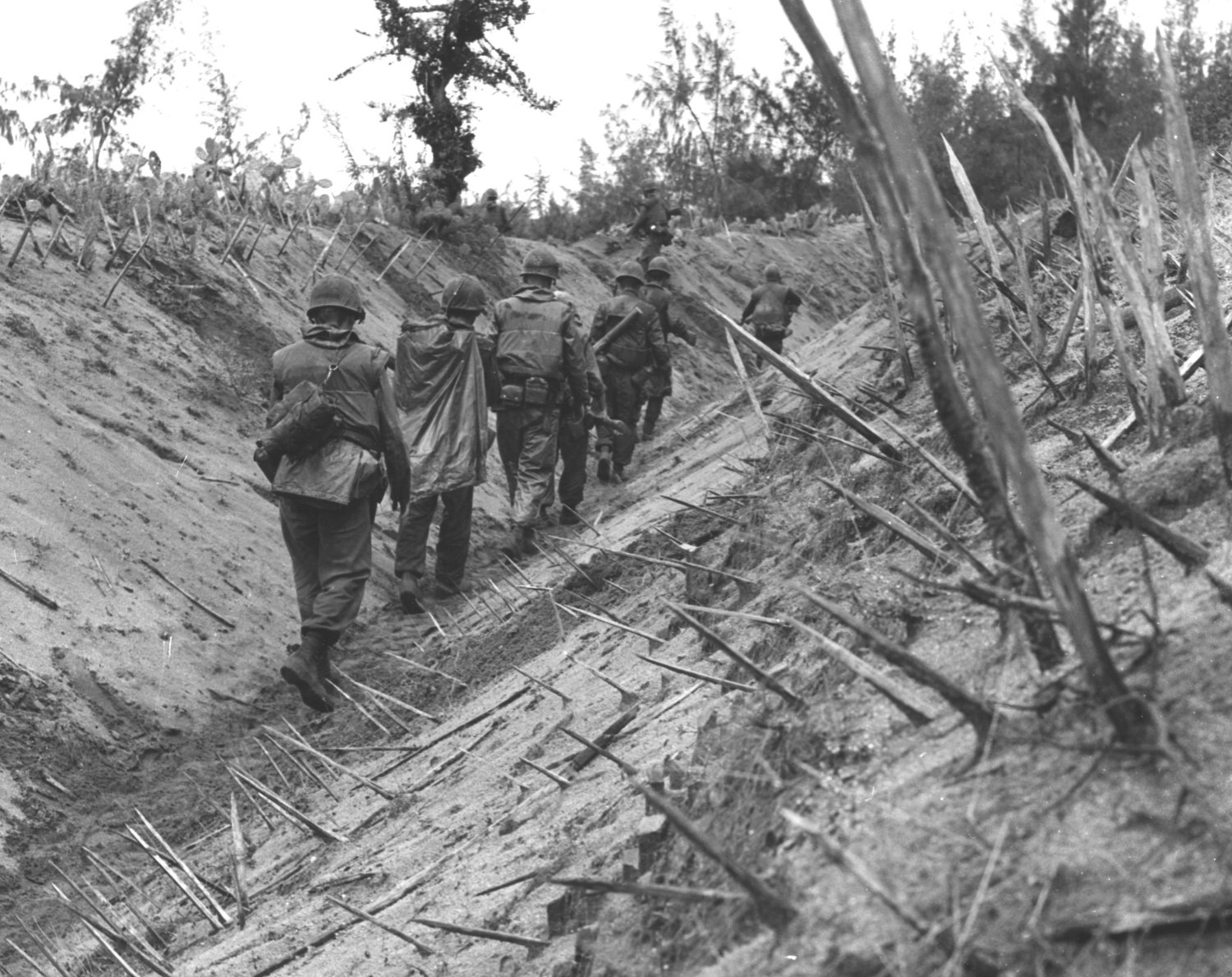 Company F, 2/4 Marines pass through a punji-staked gulley during Operation Double Eagle.