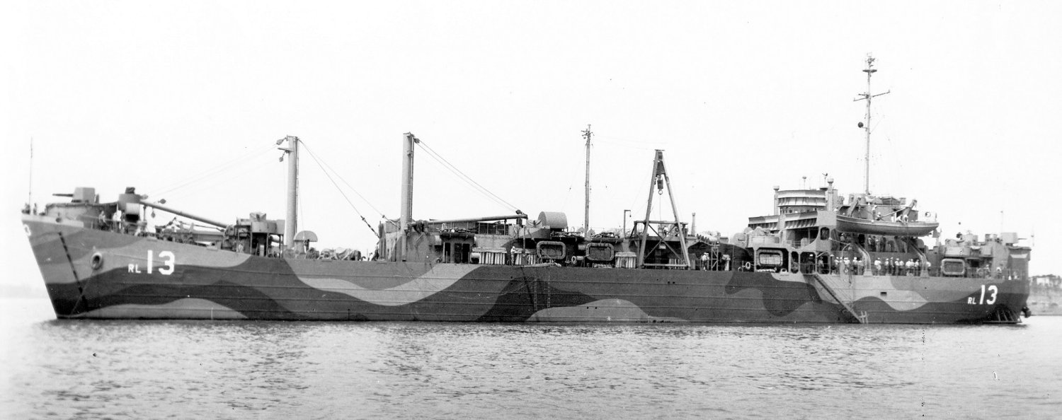 122k | USS Menelaus (ARL-13) off Baltimore, 8 June 1945, painted in camouflage scheme MS 31/5L.