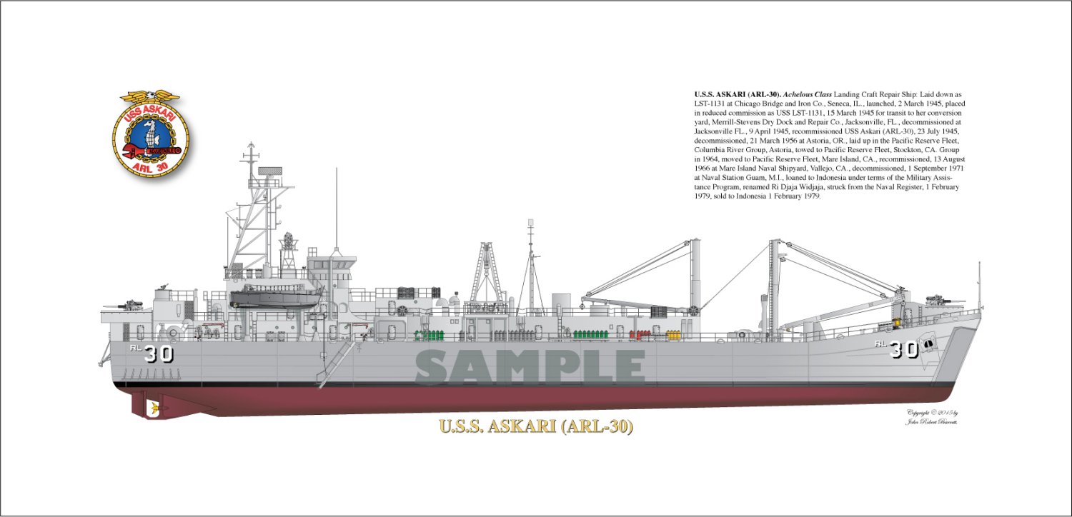 121k | Illustrator John Barrett's rendition of USS Askari (ARL-30) | John Barrett | |