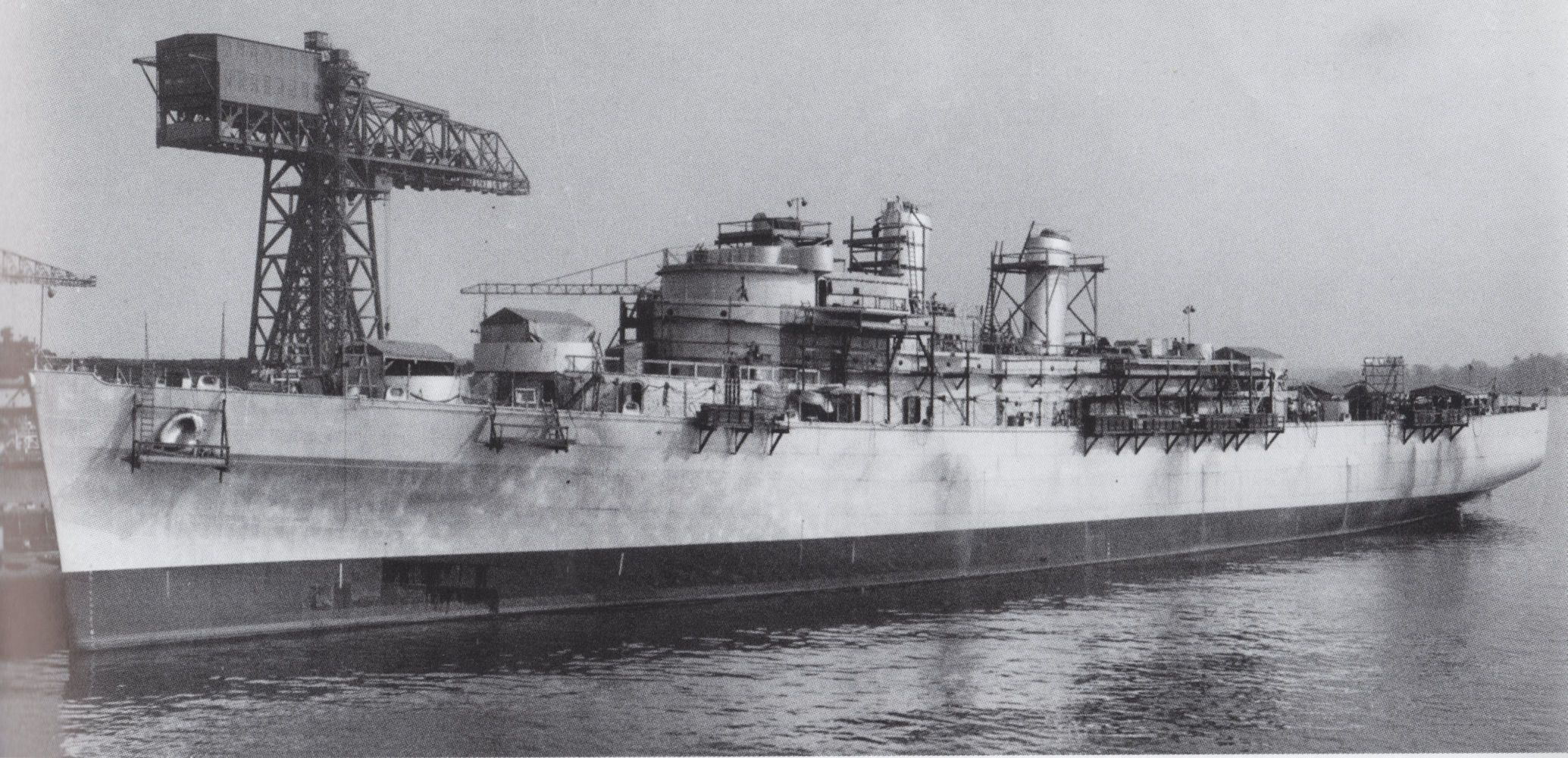 443k | Terror a few days before her launching at Philadelphia Navy Yard on 6 June 1941. International News photo |