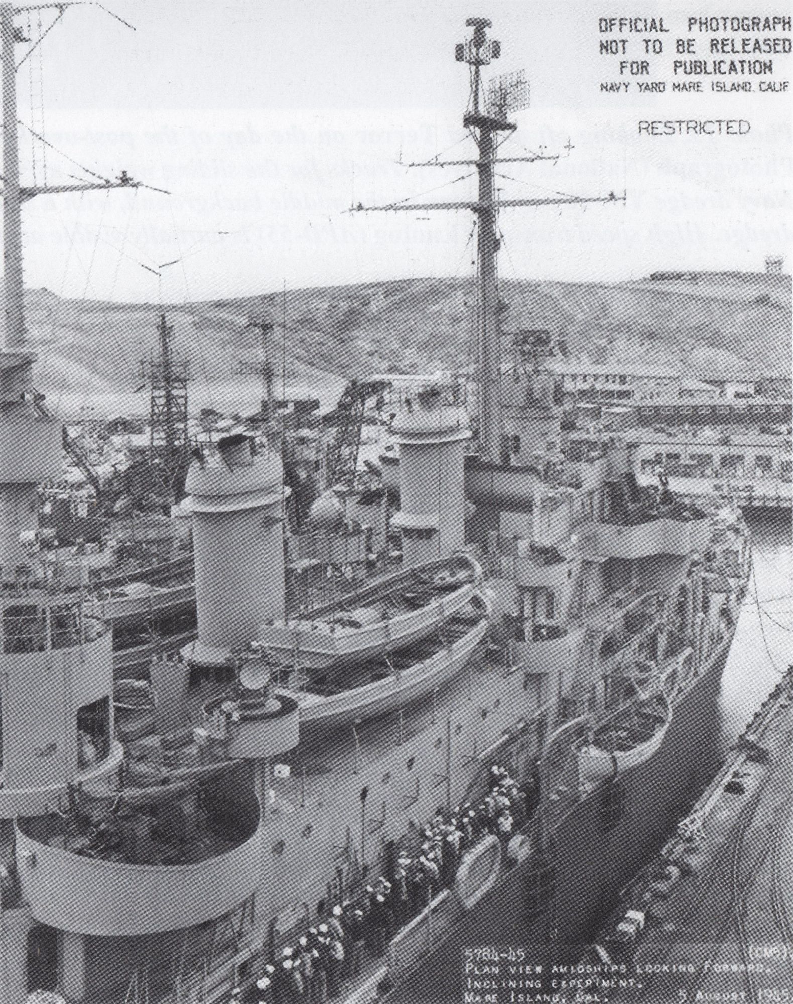 93k | Two more views near Mare Island, CA on 09 August 1945 after refit to repair kamikaze damage. National Archives photo 19-N-88289 and 19-N-88288 from Shipscribe.com |