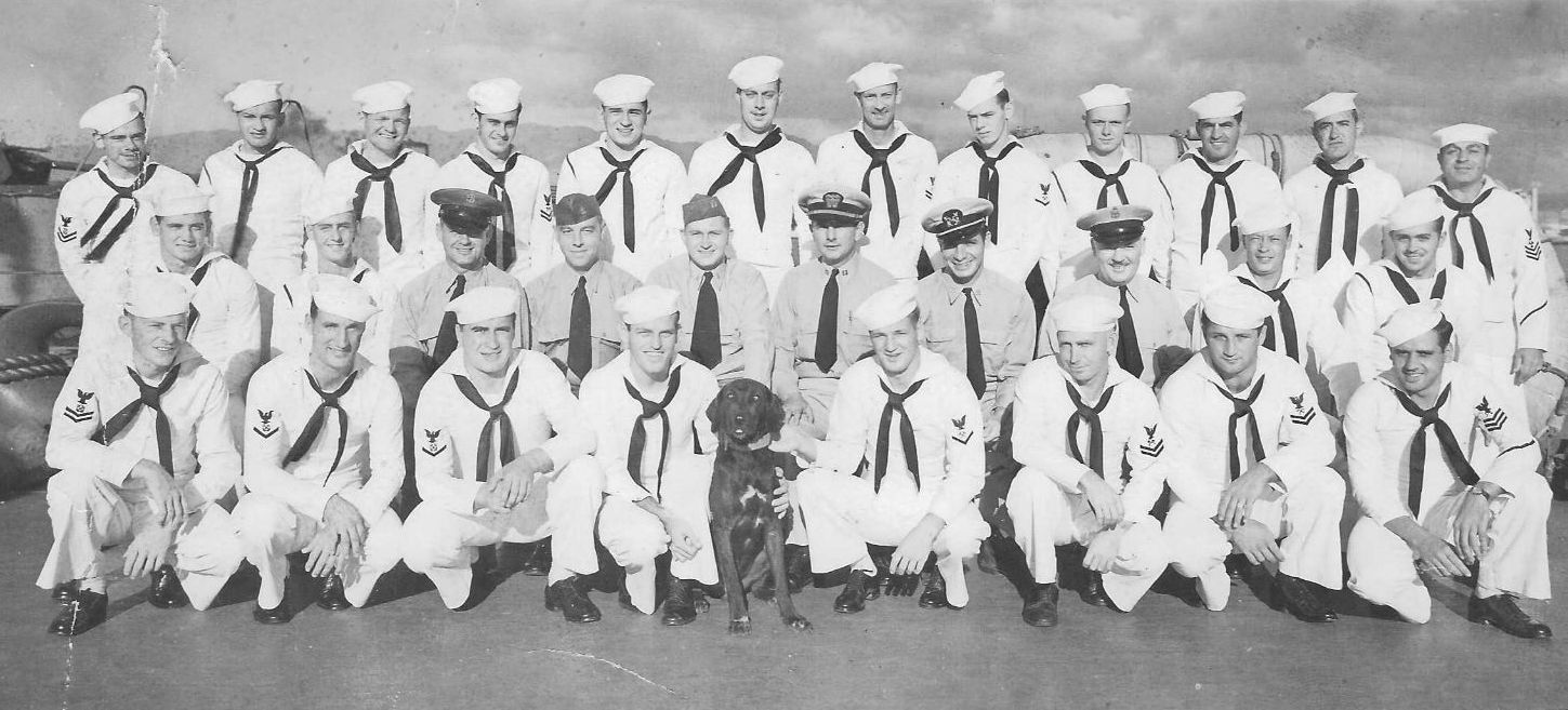 160k | Another Terror crew photo, again probably at Pearl Harbor later 1945/early 1946. The ship's mascot "Error" is in the center. | David Wright | |
