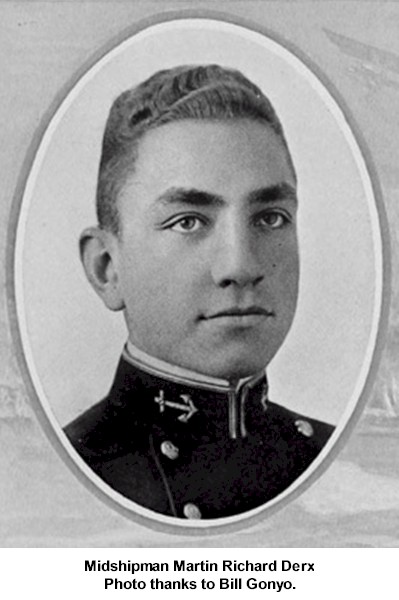 | 02 | LT Martin Richard Derx, USN - USNA Class of 1918 Awarded the Legion of Merit (1945) - Retired as Captain | 3 September 1920 - 23 October 1921 |