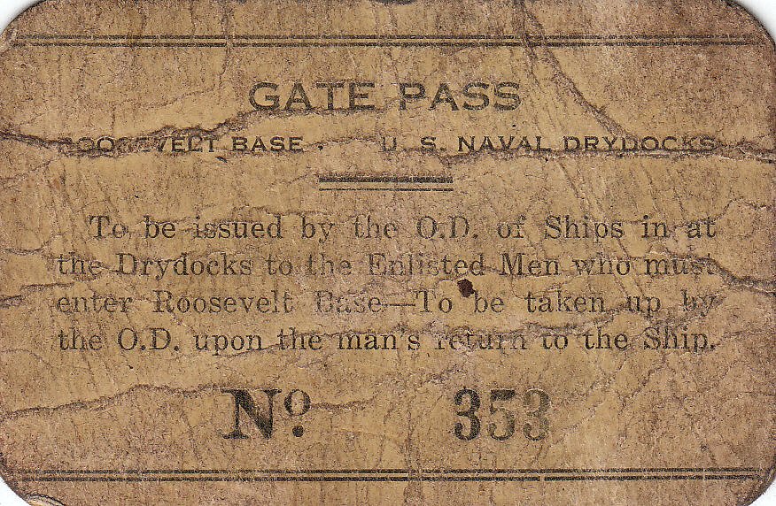 140. Gate Pass for Roosevelt Base, Los Angeles, CA