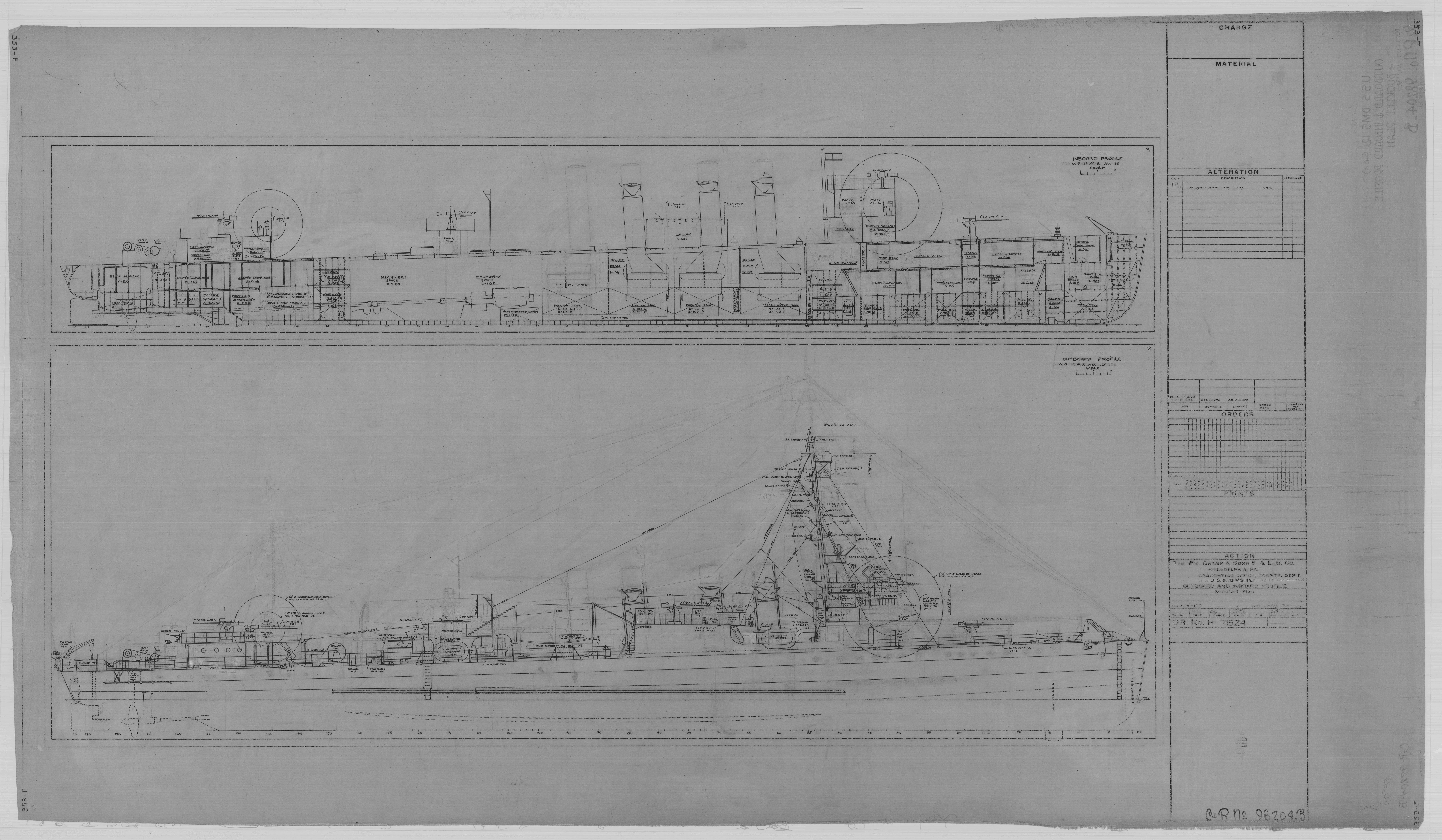 6.95k | Booklet of General Plans - Inboard Profile / Outboard Profil, 19 May 1919 & updated 29 October 1943. | National Archives Identifier: 167817704 Photo courtesy of catalog.archives.gov, via Daniel Hacker. | |