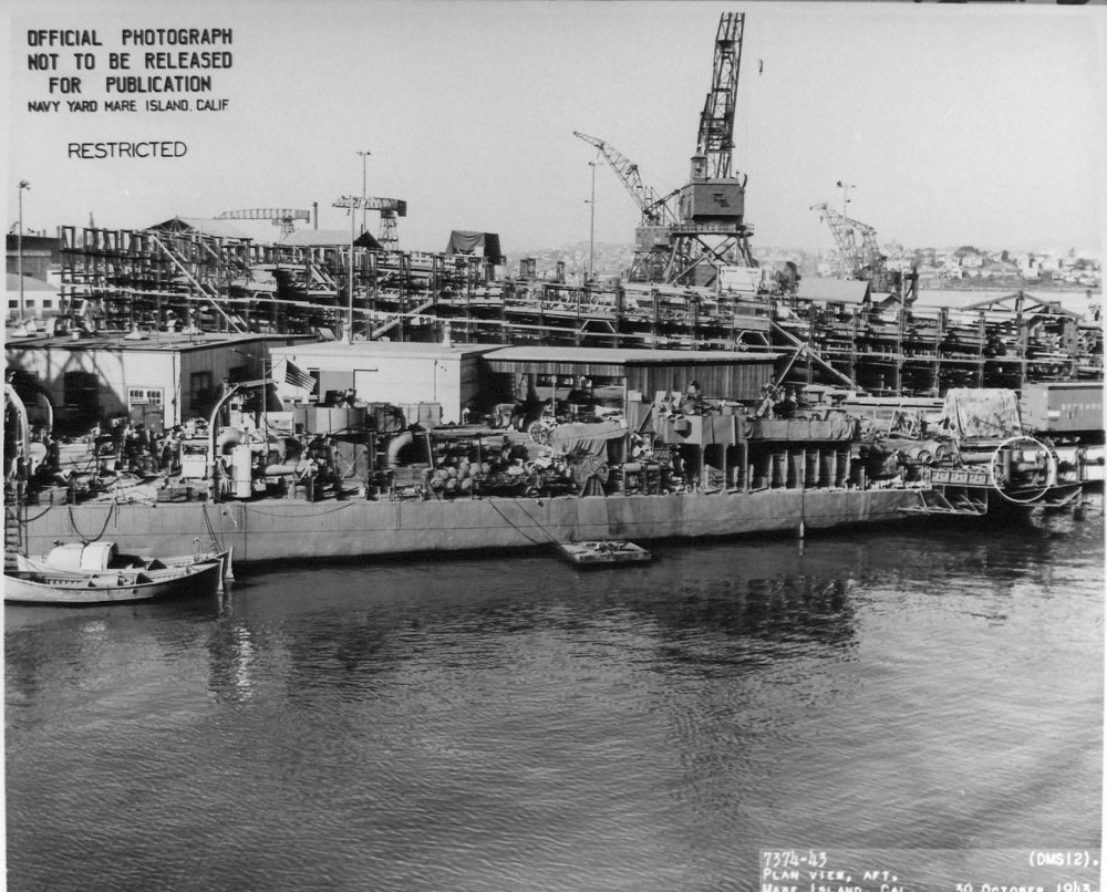 110k | Off the Mare Island Navy Yard, California, 30 October 1943 U.S. Navy photo 7407-43 Naval History and Heritage Command photo NH 107304 |