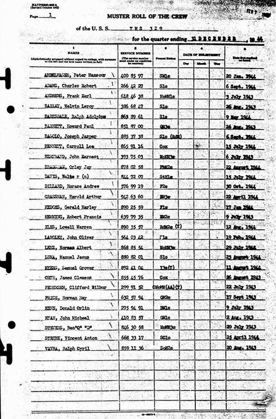 | Back to the Main Photo Index | Back to the Mine Warfare Ship Photo Index | Back to the Auxiliary Motor Minesweeper (YMS) Photo Index |