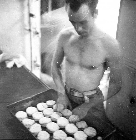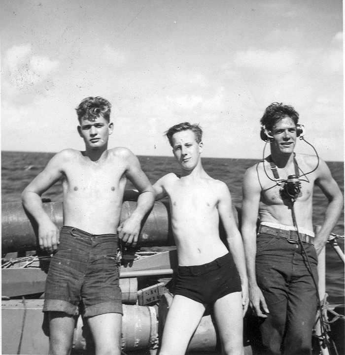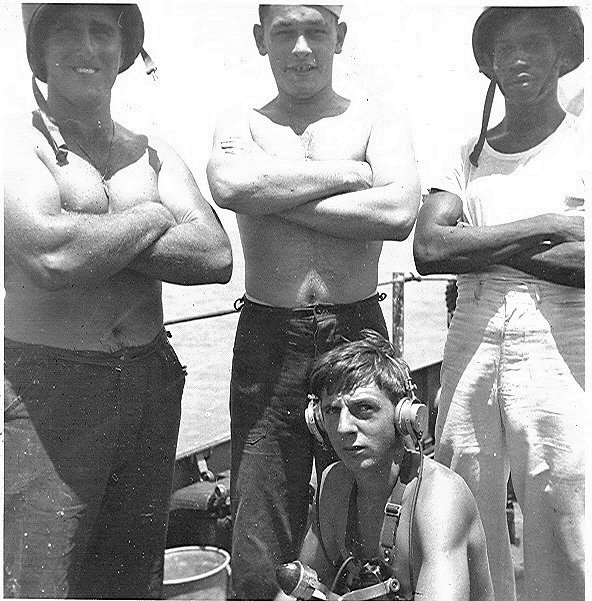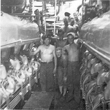 1. CMoMM Anthony J. Pellechio, front row left, in the engineroom with his “Black Gang” |