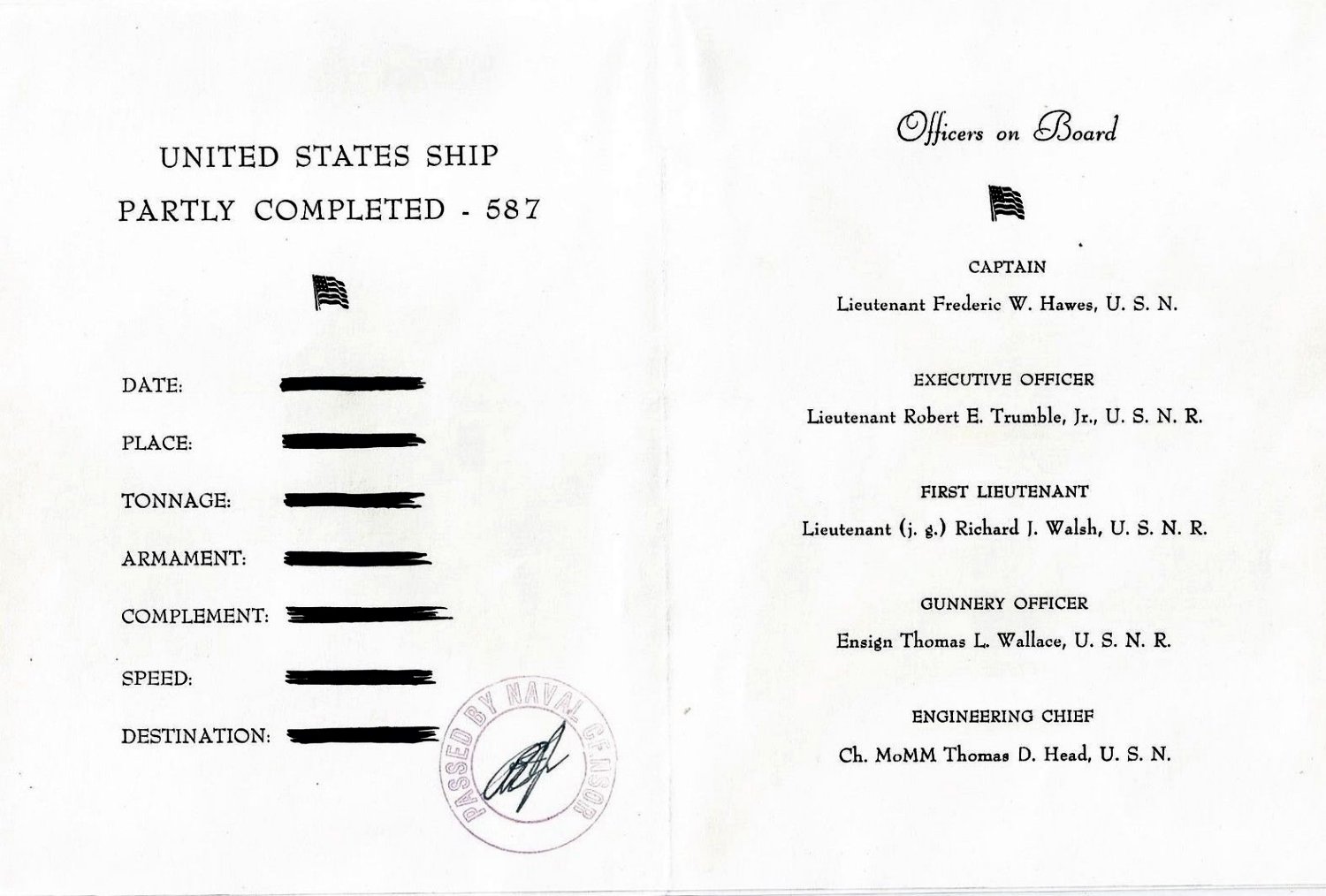 | 03 | LTJG R. H. Lewis, Jr., USNR | 1945 |