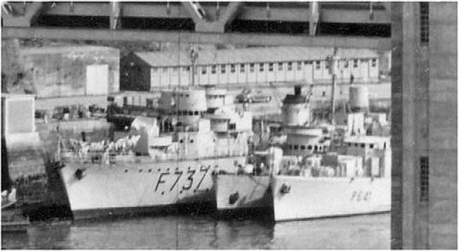 c. 1957 Brest, France Le Fougueux outboard of an unidentified U.S. Navy PC and Bisson (F 737) Photo from French PC website |