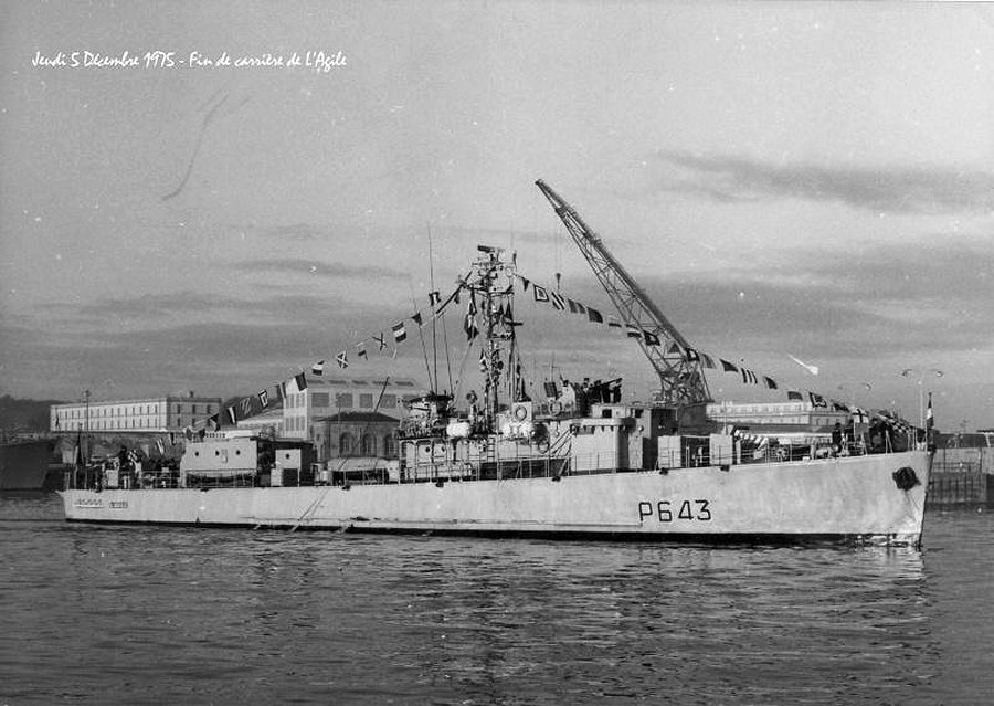 • Laid down as PC-1612 by At. et Ch. de Provence, Port de Bouc, France for the French Navy using "offshore" funds