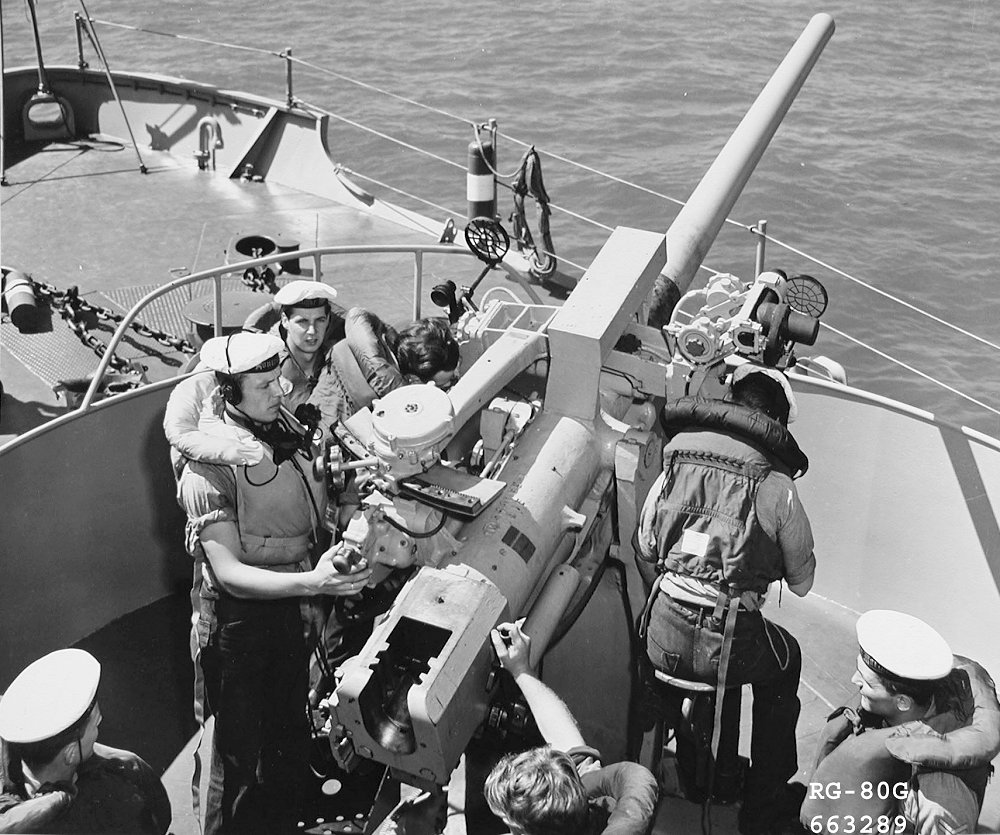 13 September 1954 Personnel of ship man the 3"/50 gun during general quarters drill National Archives photo 80-G-663289 |