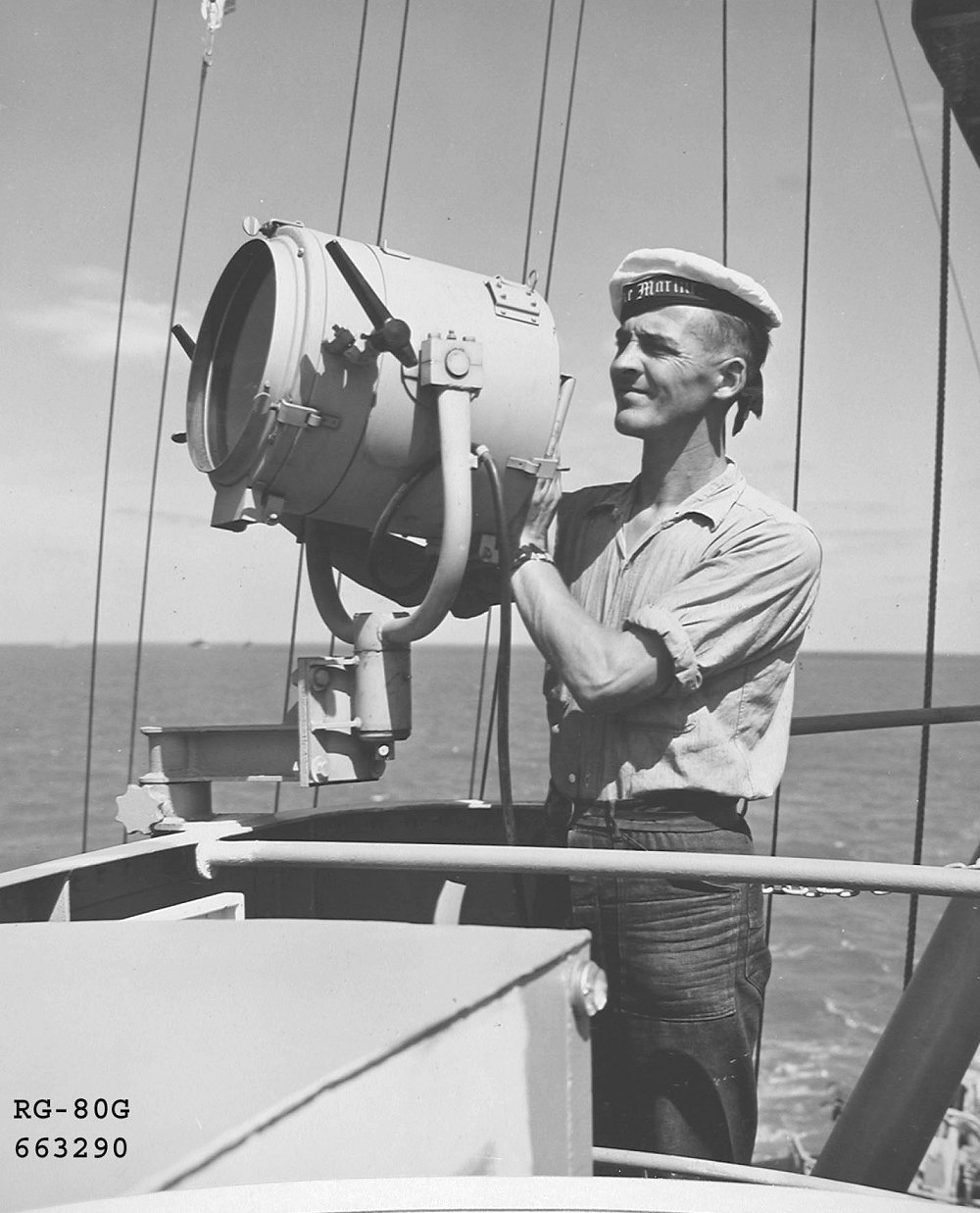 W. Holtkamp, QMS2 signals on bridge of ship National Archives photo 80-G-63290 |