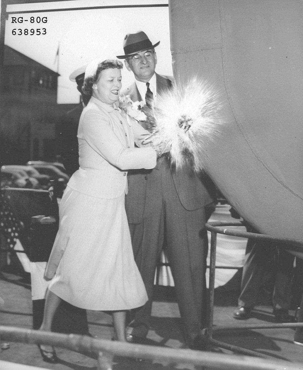 1 May 1954 Launching of the PCE-1606 at the General Ship and Engine Works Inc., East Boston, MA. Mrs. Philip W. Snyder, Sponsor, and Mr. I.W. Barkman, Treasurer of General Ship and Engine Works Inc., East Boston, MA National Archives photo 80-G-638953 |