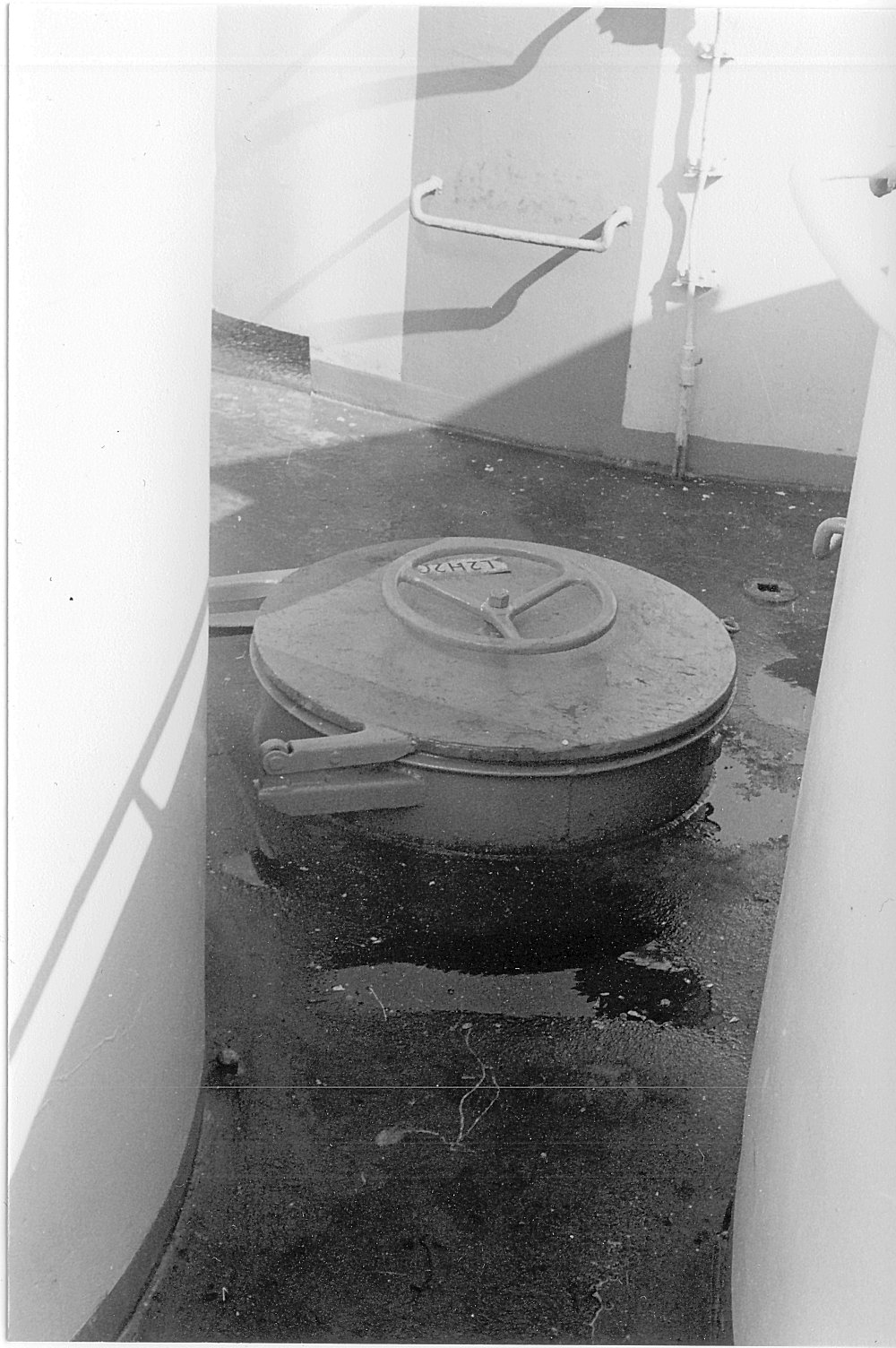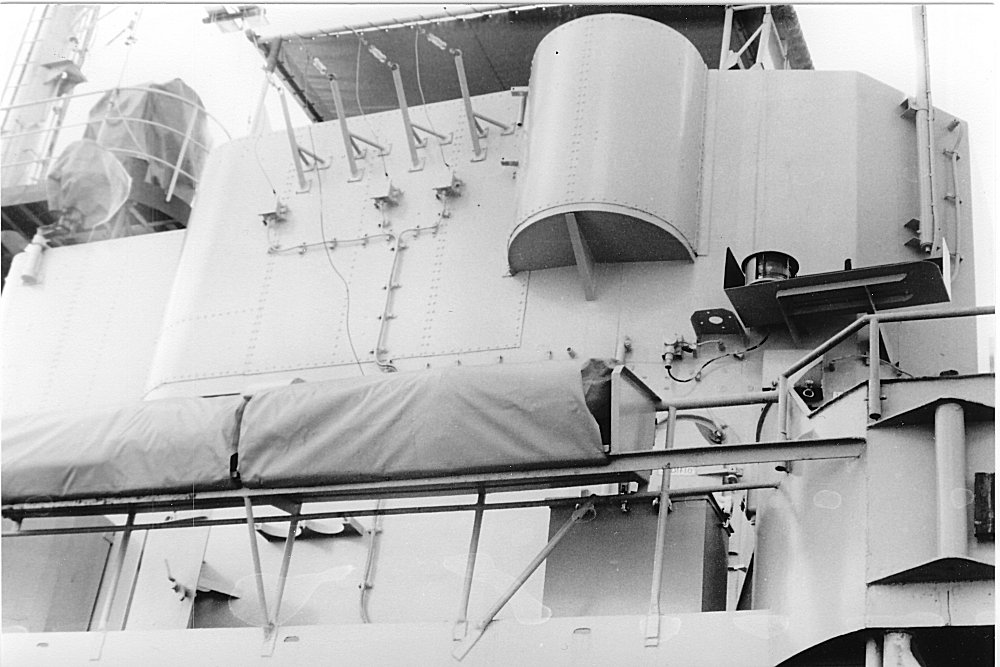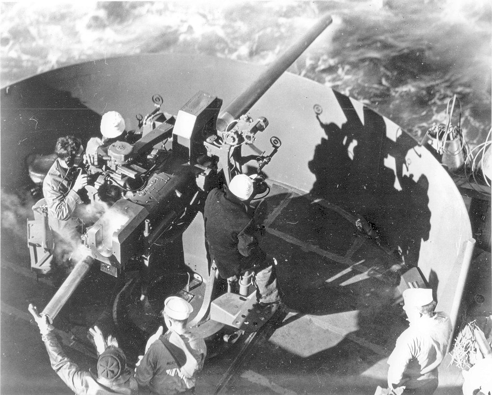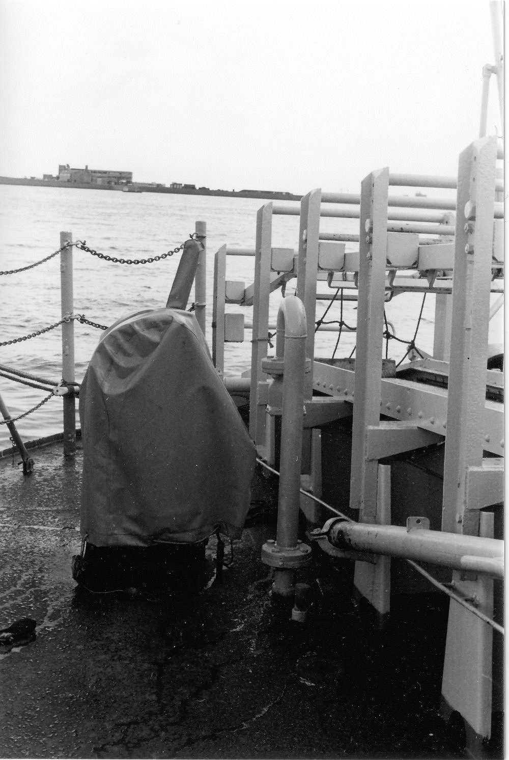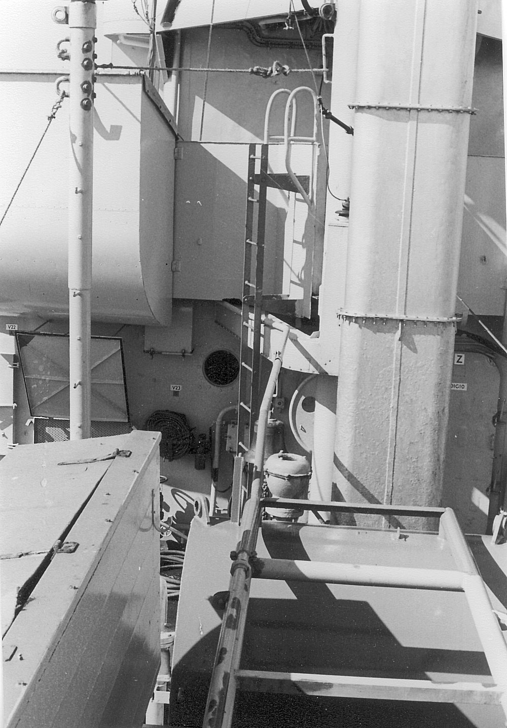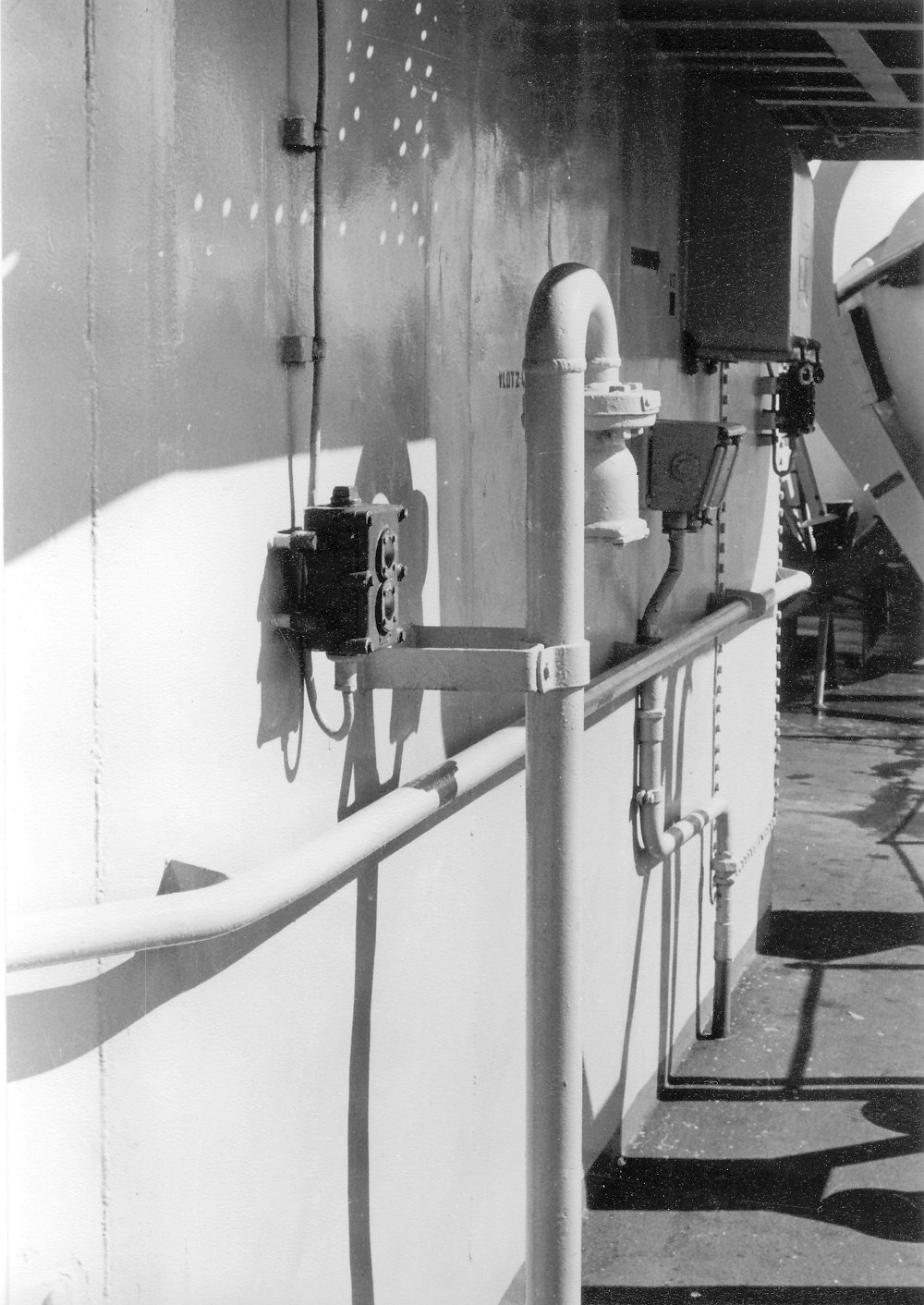 22. Main deck, looking aft at 3"/50 mount and splinter shield