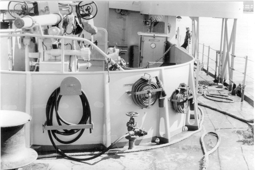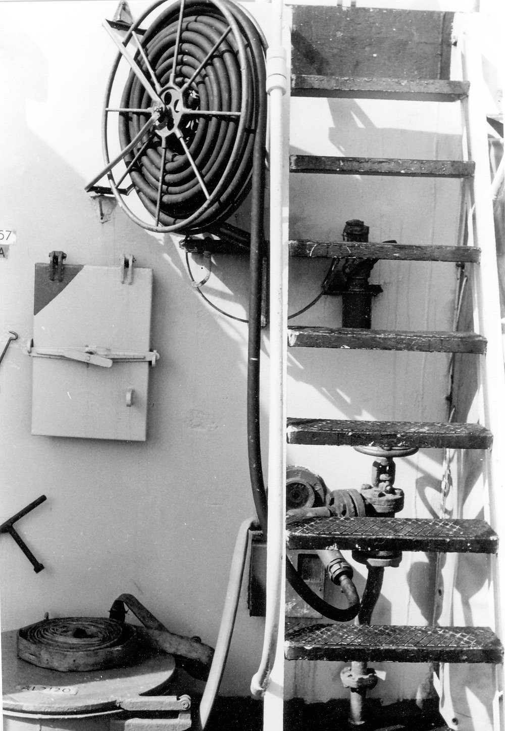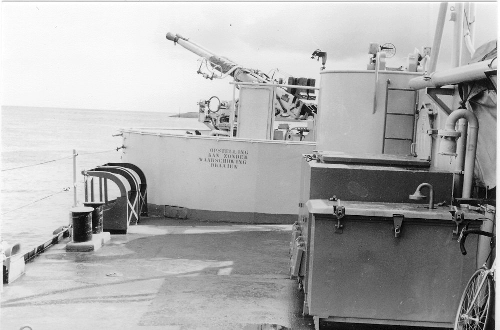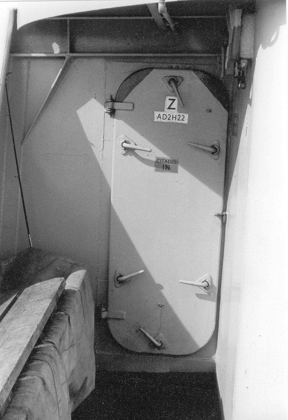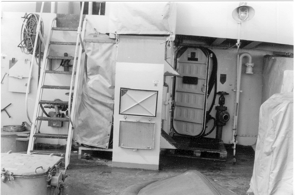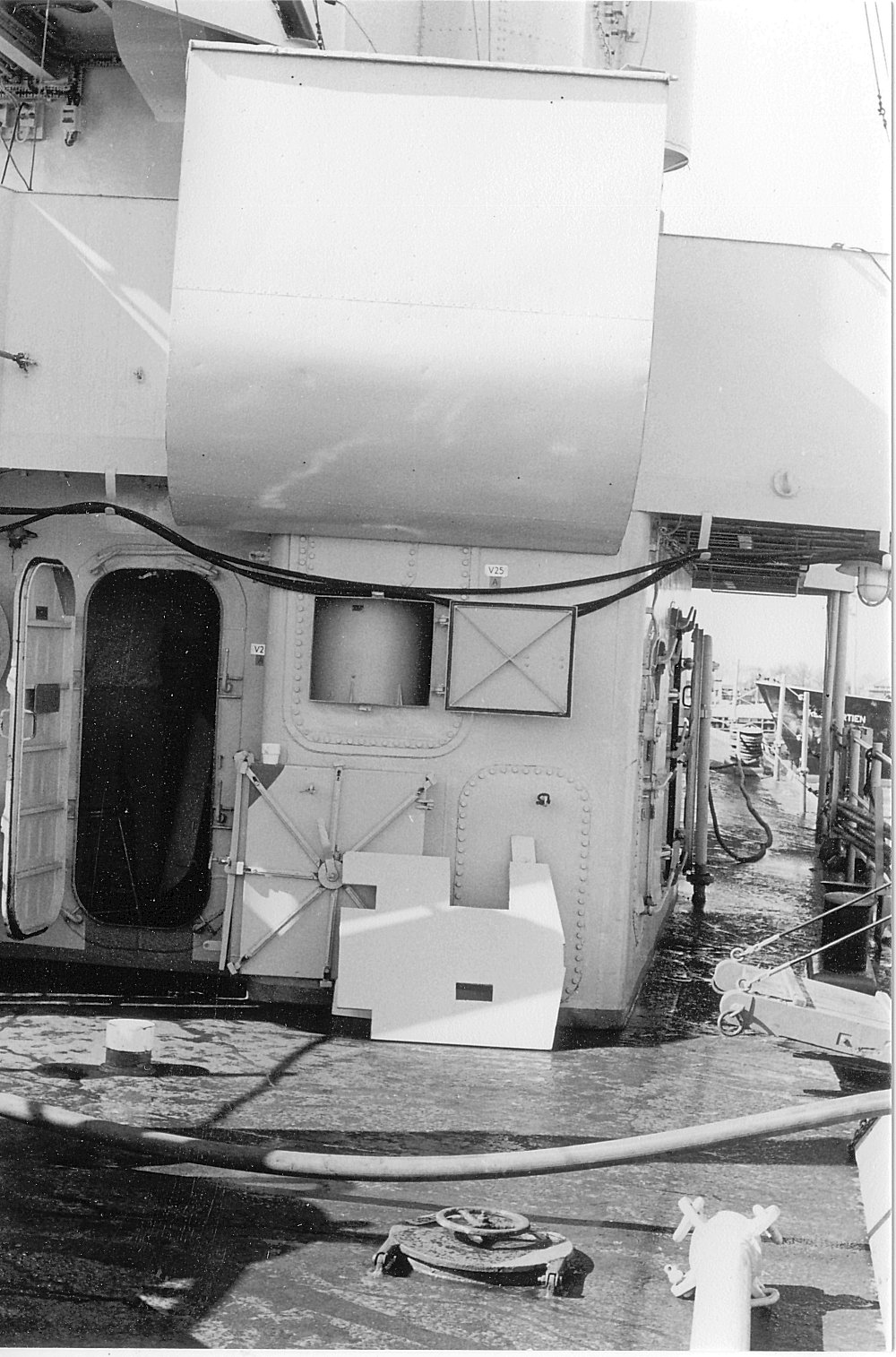 22. Main deck, looking aft at 3"/50 mount and splinter shield