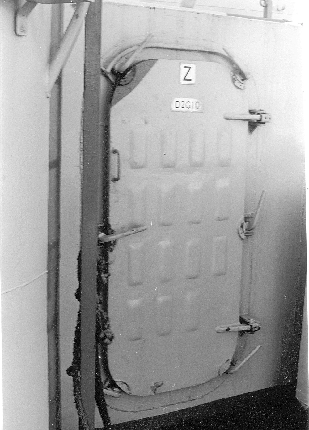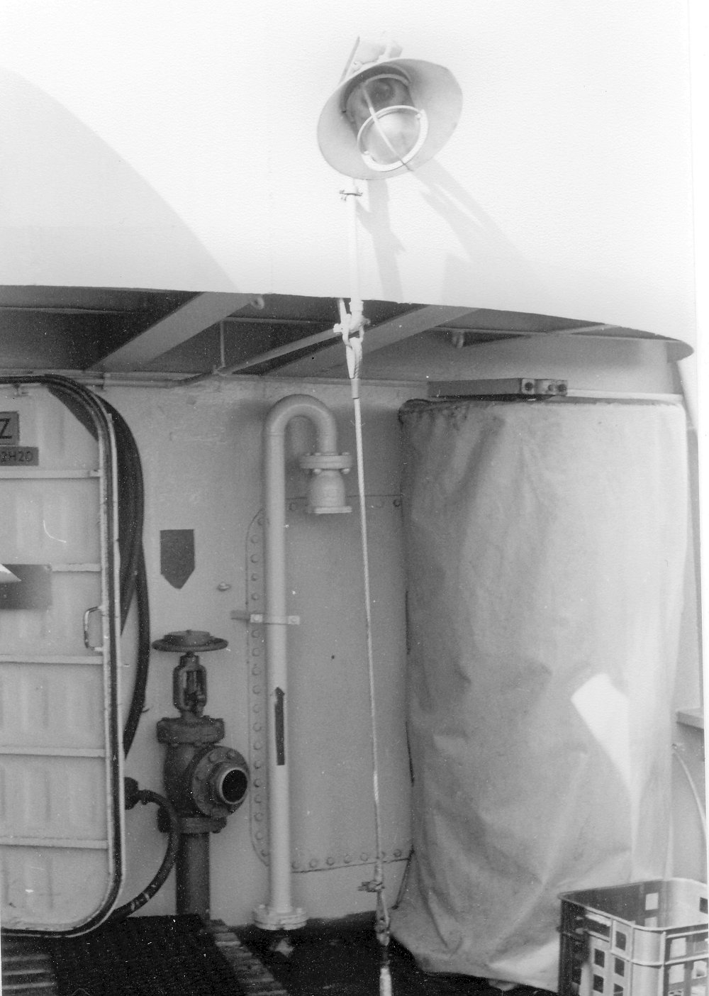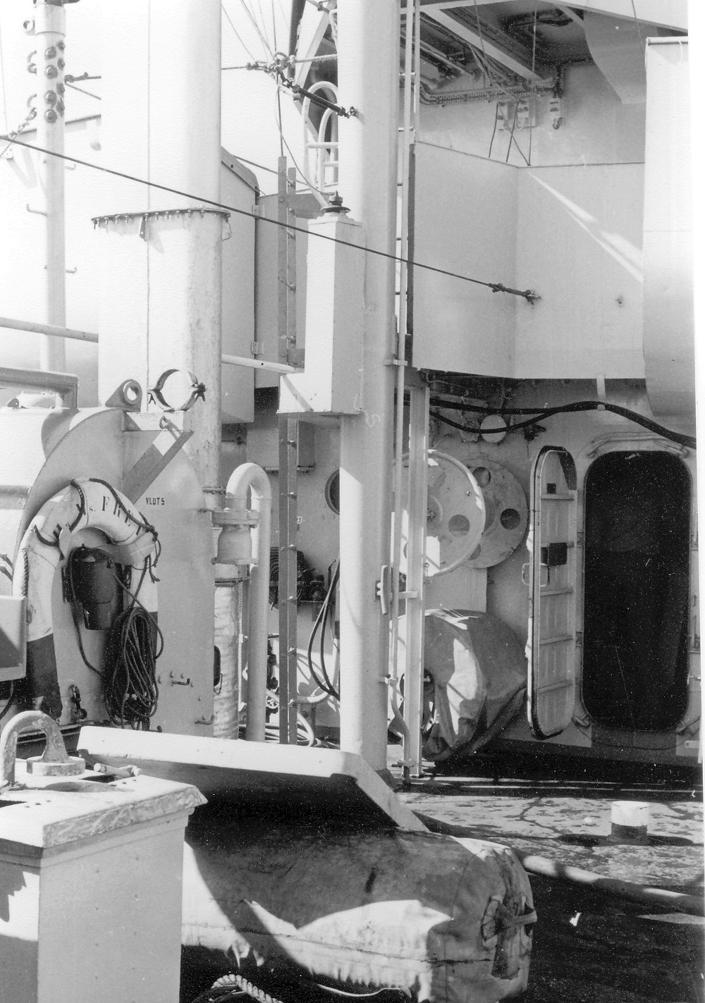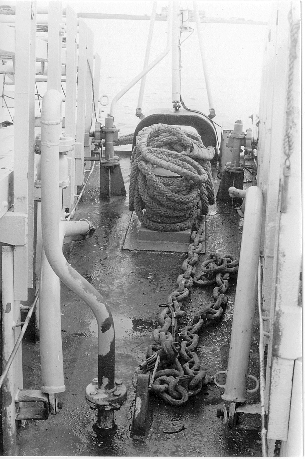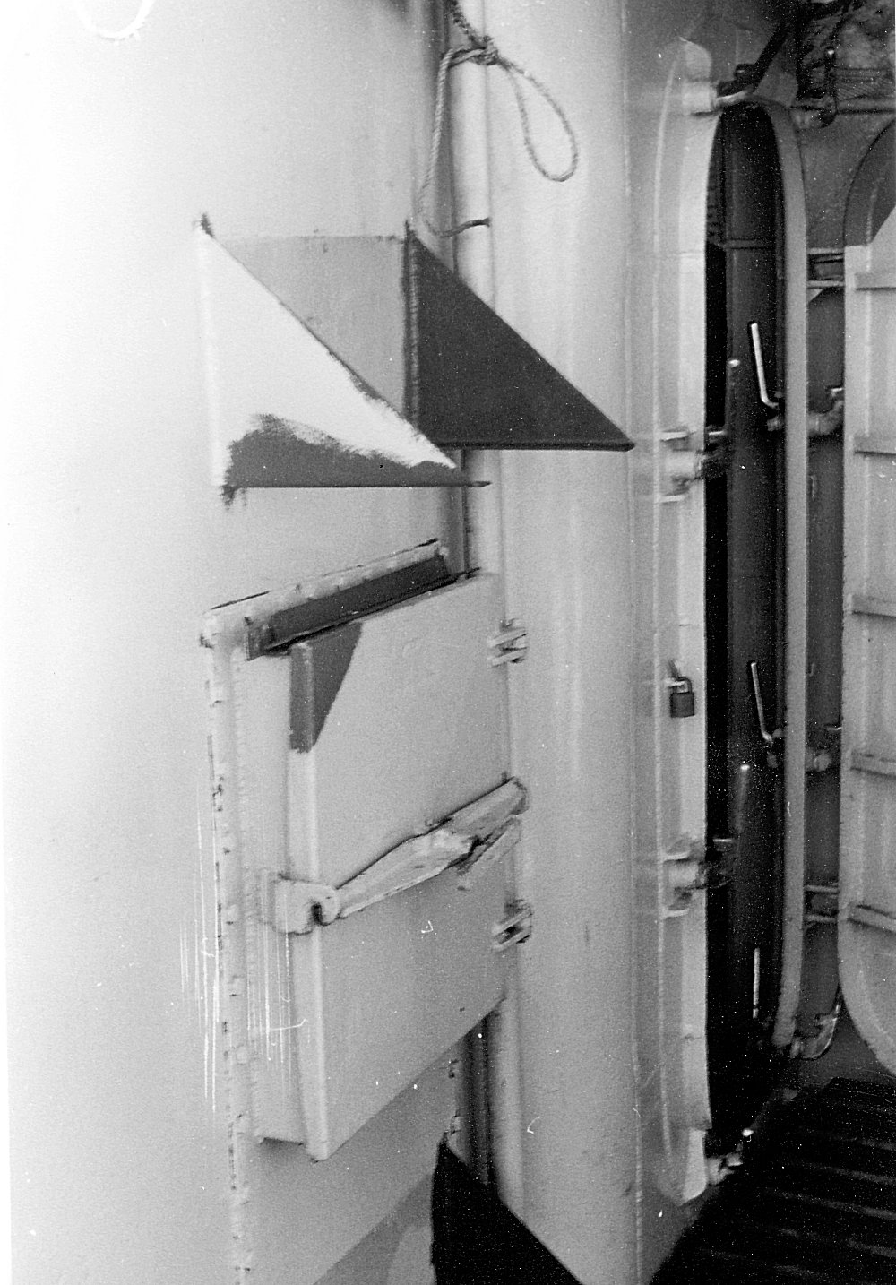 22. Main deck, looking aft at 3"/50 mount and splinter shield