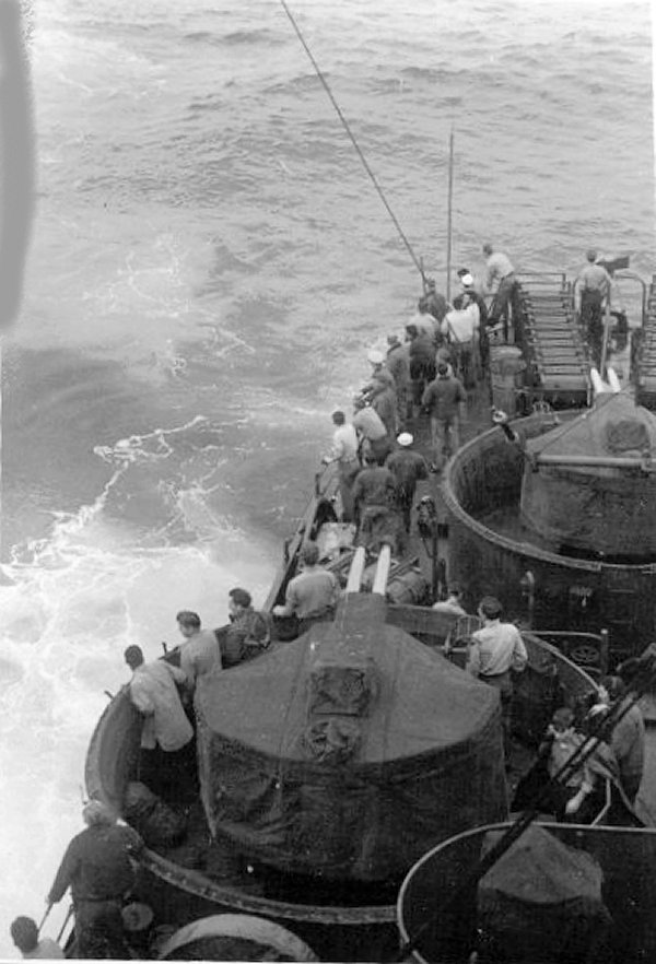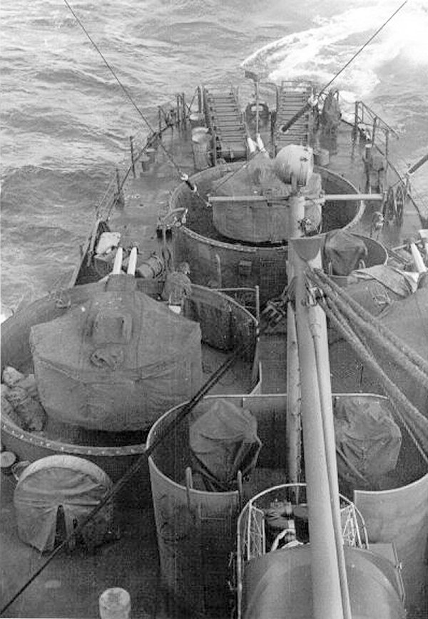 In the Pacific. The twin 40mm mounts were installed at Staten Island, NY for deployment to the Pacific |