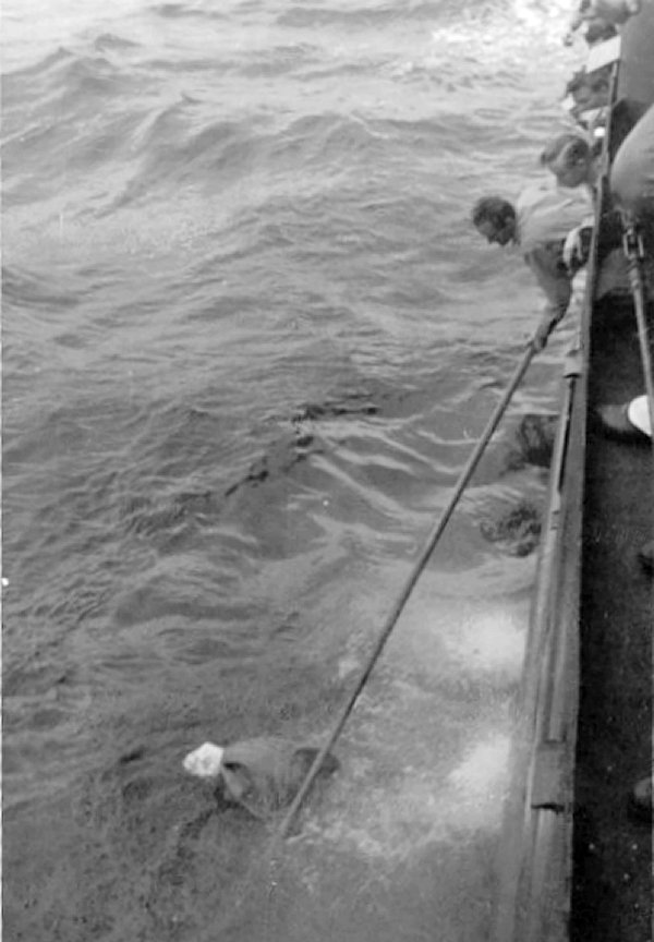 In the Pacific. Retreiving a mail sack dropped from an R5D aircraft |