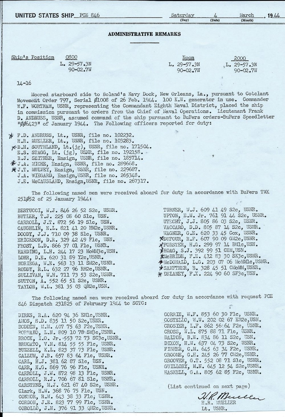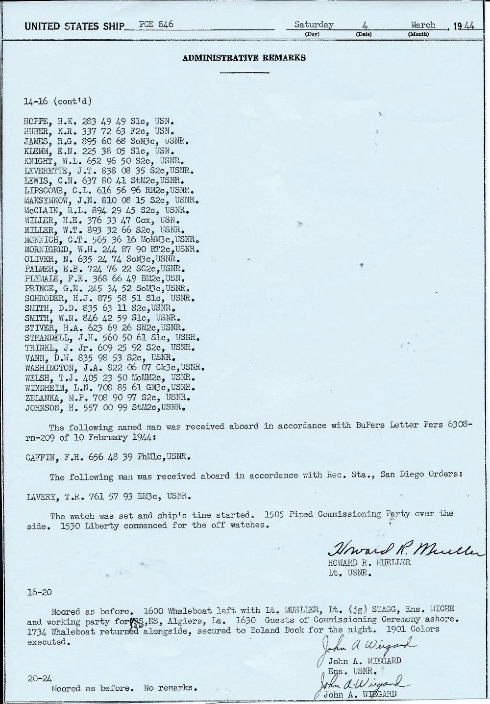 4 March 1944 Deck Logs |