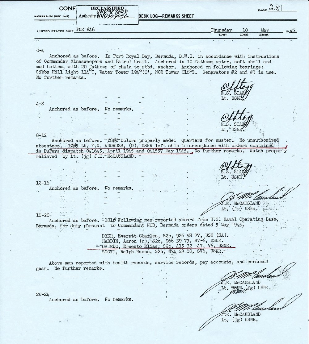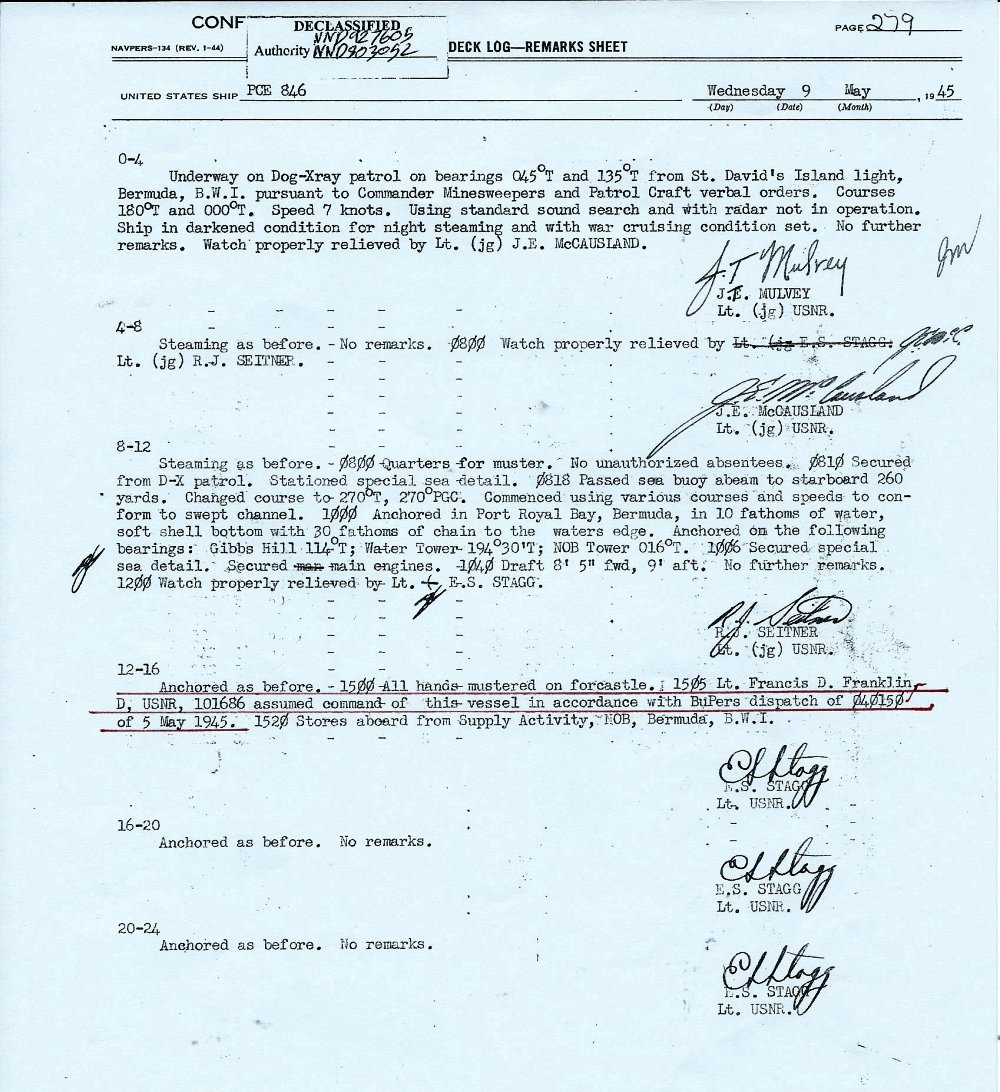 c. 1944 St. George Harbor, Bermuda Inboard of PCE-847 Courtesy of Leonard Frost |