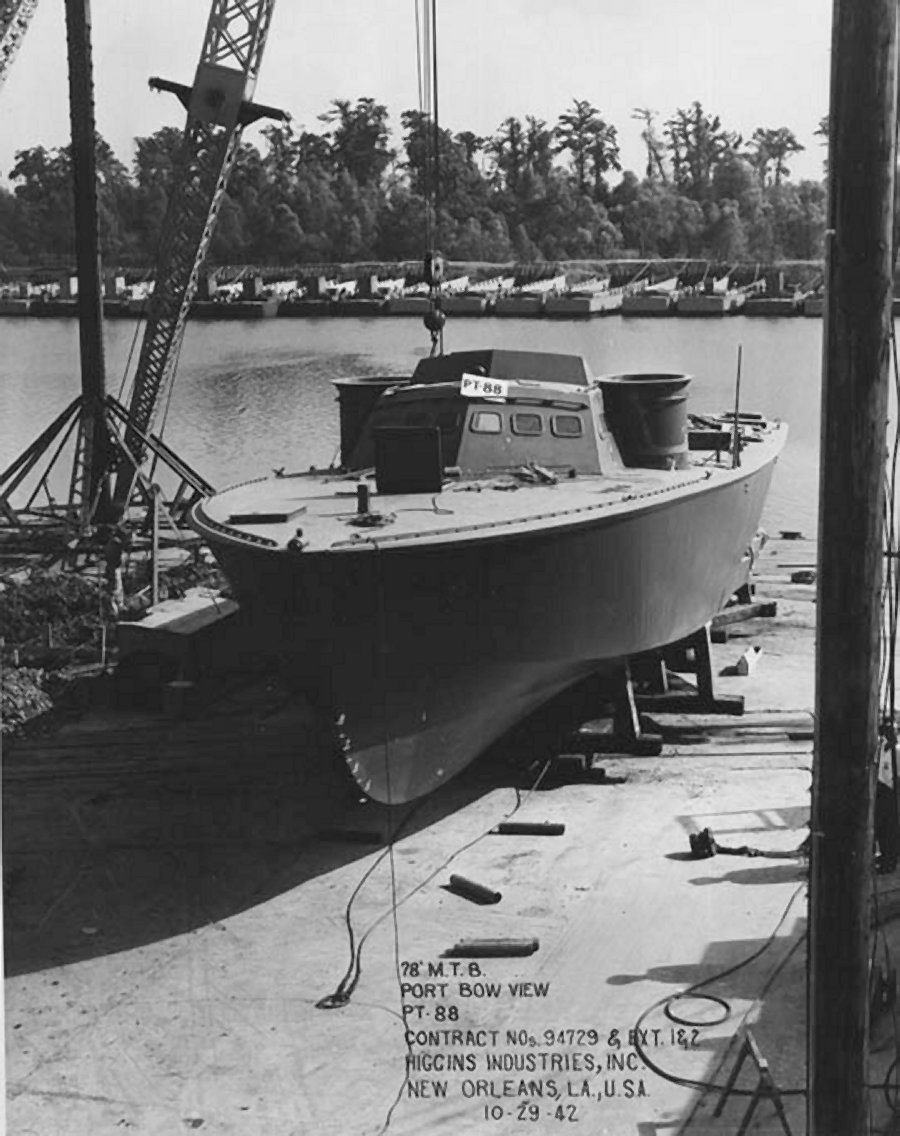 29 October 1942 Port bow view of PT-88 under construction Higgins Industries photo. |