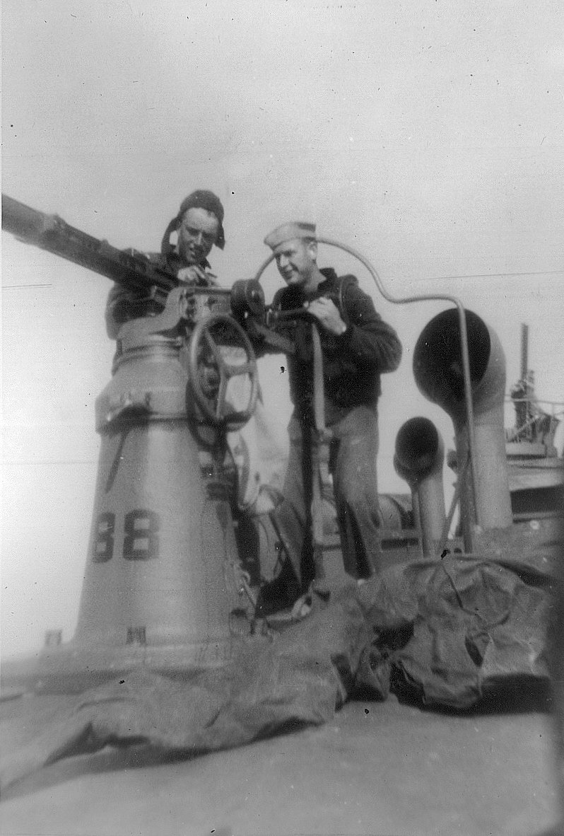 c. January 1943 Inspecting aft 20mm mount while en route to New York for turnover to the Soviet Union Photo from the collection of MoMM1/c Dave Prentice |