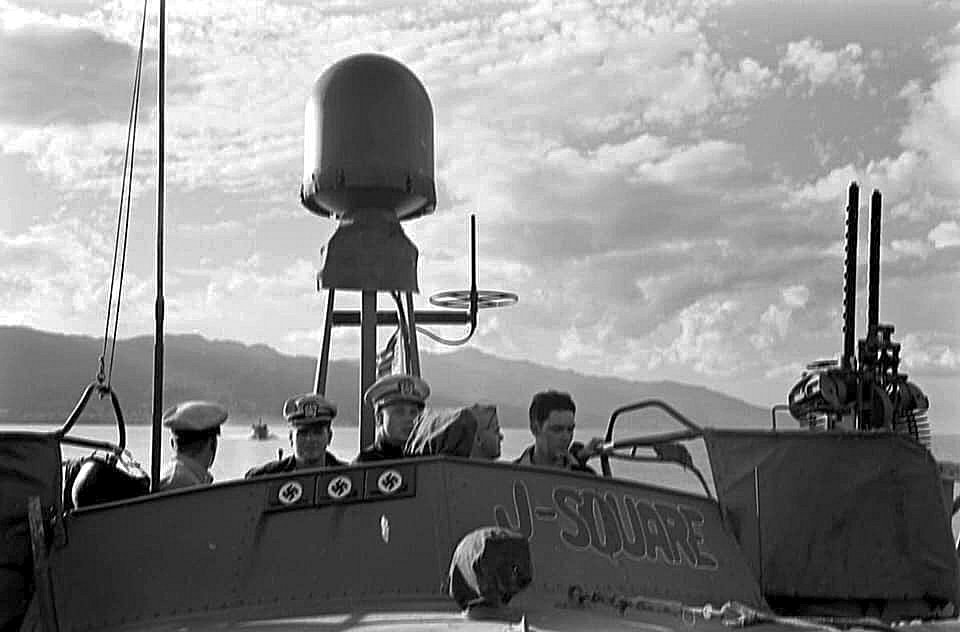 The boat captains inspected their boats to make sure that no personnel remained below, and then got their crews into liferafts. They tied the liferafts together and held a muster. Only one man was missing. One officer and five enlisted men were injured. By amazing luck the engineer on watch in the engineroom of each boat survived, although on one boat the force of the blast tossed a bank of storage batteries right out of the engineroom and onto the forecastle.