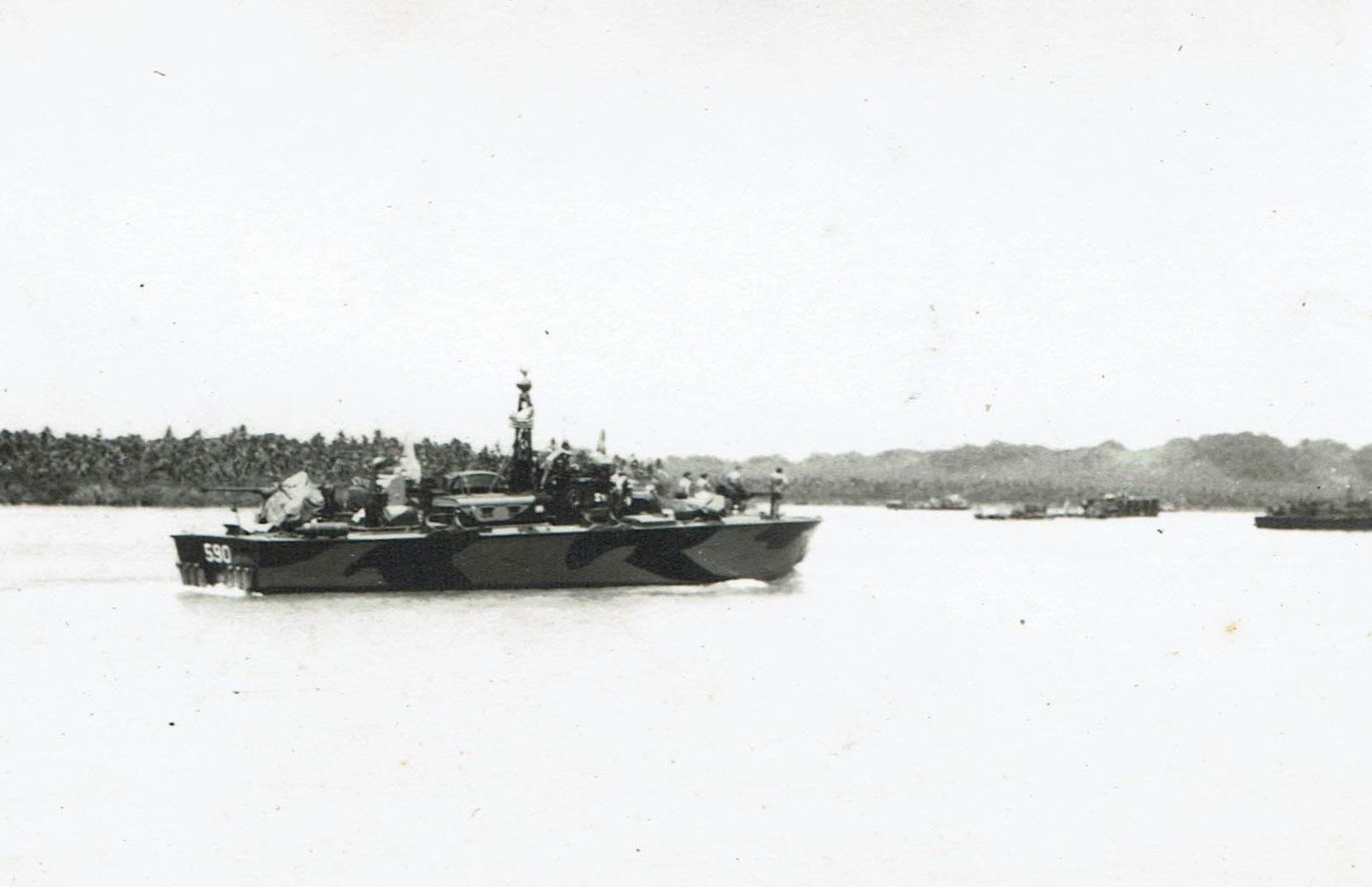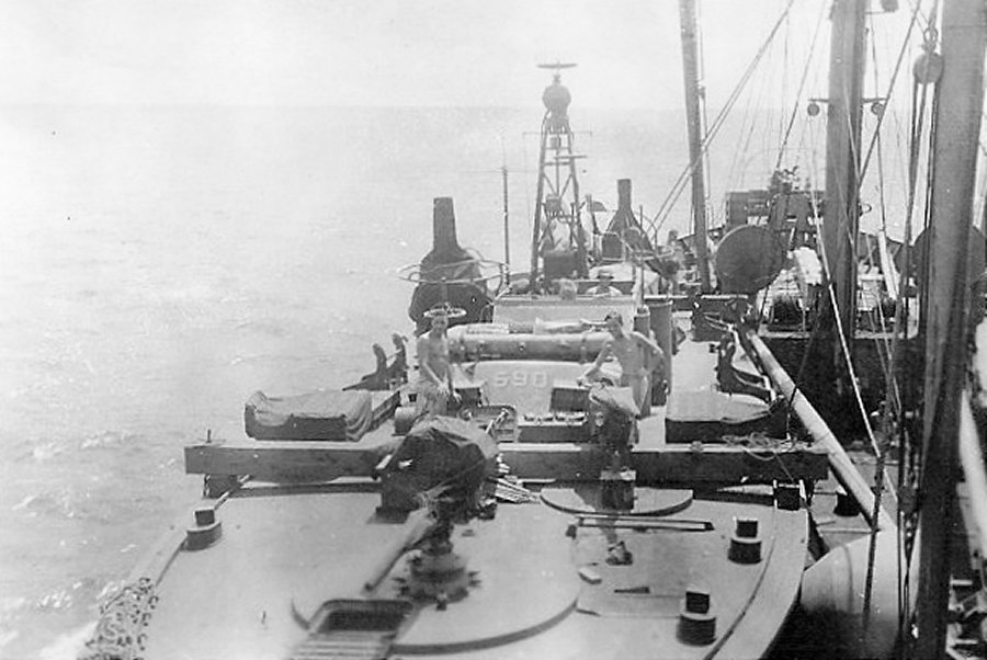 PT-590 underway near Guiuan, Eastern Samar Province, Philippines, July-August 1945. Photo by F1c(MoMM)(PT) Carl Herman Wagner, Jr. USNR; he was stationed at Guiuan from 12 July-25 September 1945. |