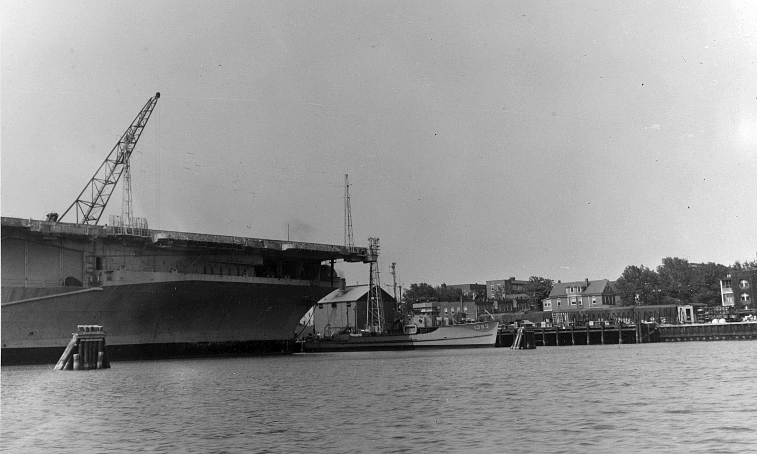 Attica 217k With USS Lake Champlain (CV-39) at Newport News, Virginia, on 6 June 1948