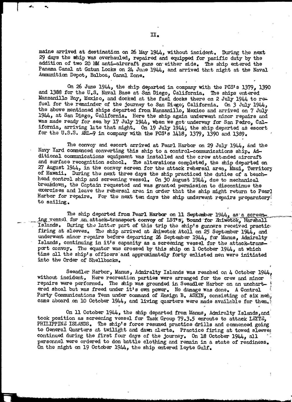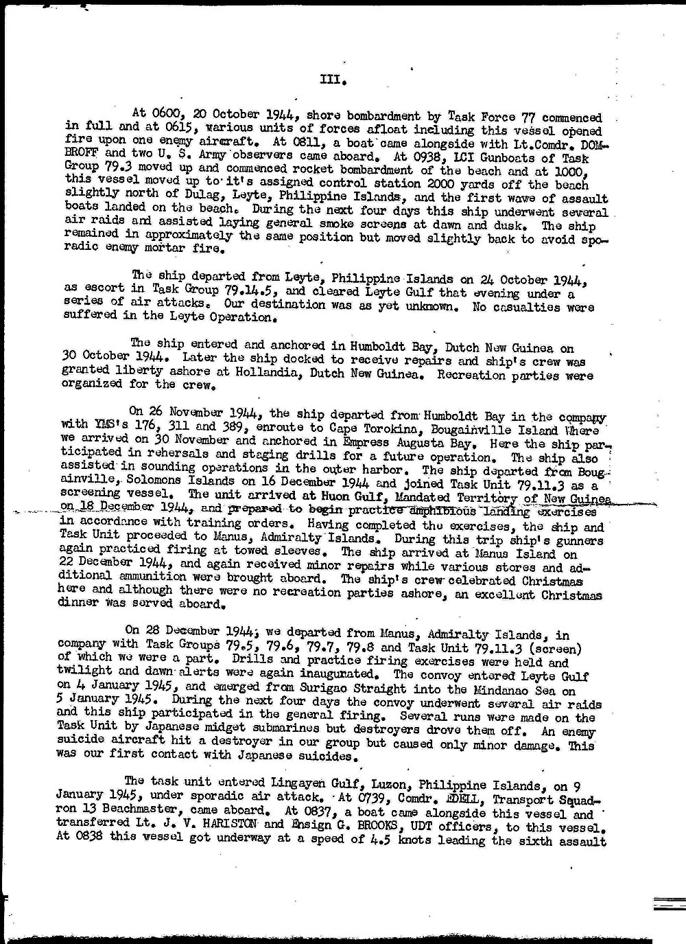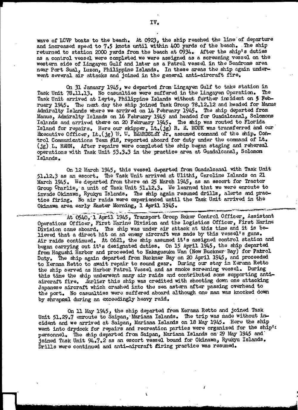 | 04 | LTJG W. R. Royster, USNR | 16 August 1945 - 11 December 1945 |