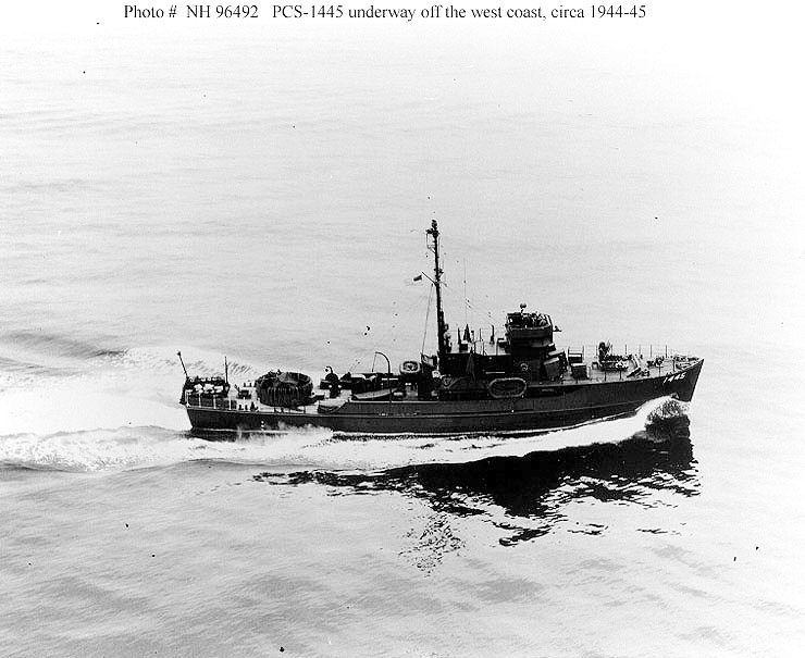 PCS-1445 and 1446 are seen entering ARD-32 at Mare Island Naval Shipyard on 3 April 1947. They were in dock until 10 April 1947 |