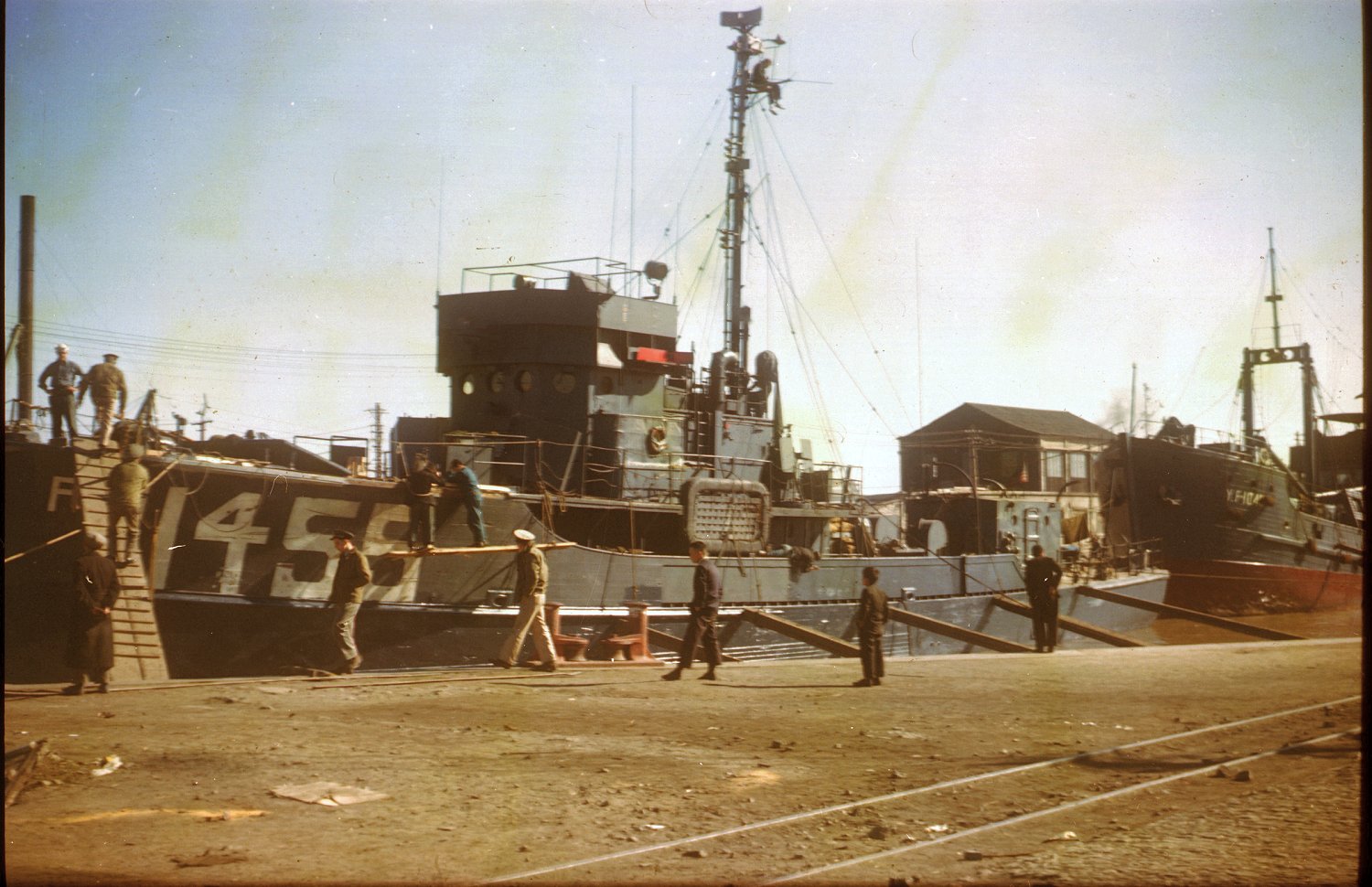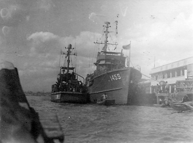 c. 1946 Shanghai, China Moored forward of Freight Lighter YF-1045 From the collection of George R. Herbert, Jr. |