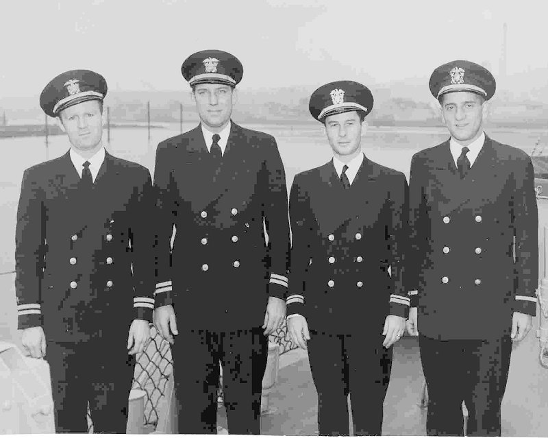 1. c. 1944. From left to right: Lieut. Thomas E. Murphy, USNR; Lieut. Foster W. Lamb, USNR; Lieut. (jg) W. J. Parker, USNR; and Ens. Arthur G. Hendrich, USNR
