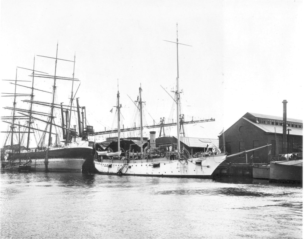 95k | Annapolis pierside at the New York Navy Yard, circa 1897. The decommissioned Atlanta lies in the background U.S. Navy photo 19-N-12-17-13 |