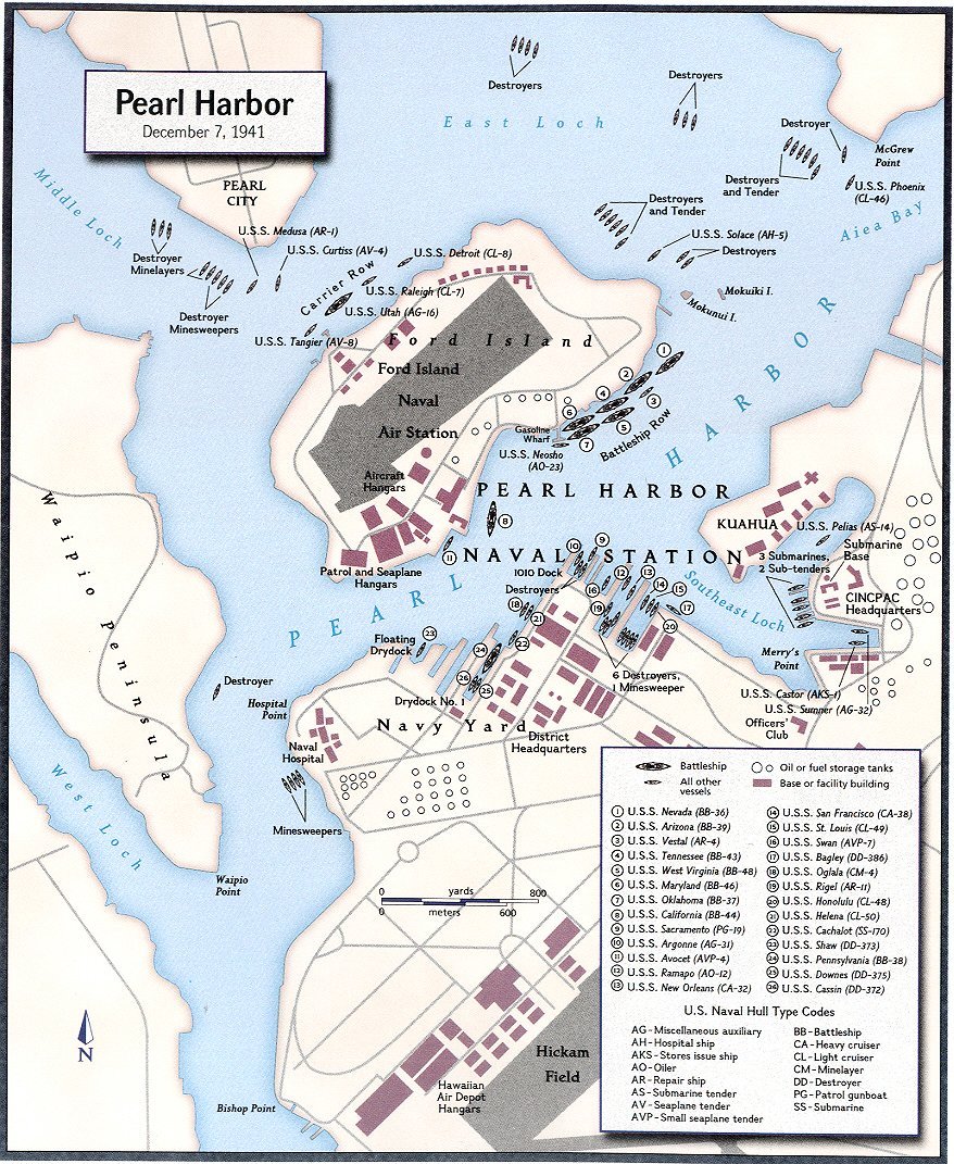 335k | 7 December 1941 Position of Sacramento and other ships at Pearl Harbor Map courtesy of National Geographic Book Division |