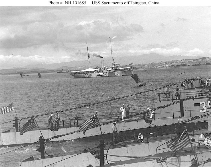 88k | c. 1923 In Chinese waters Naval History and Heritage Command photo from "Gunboats and Marines: The United States in China, 1925-1928" by Bernard D. Cole |