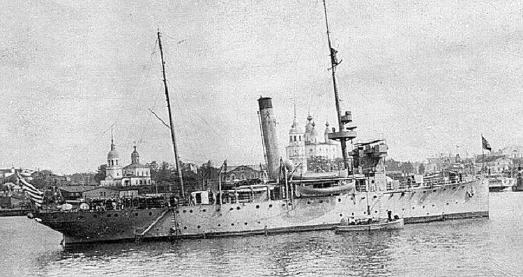 102k | Arriving at Archangel to help withdraw the North American forces from Northern Russia in June 1919. Note the doughboys on the stern. They are the 339th Infantry and are armed with newly issued M1891 Mosin-Nagant rifles U.S. Navy photo |