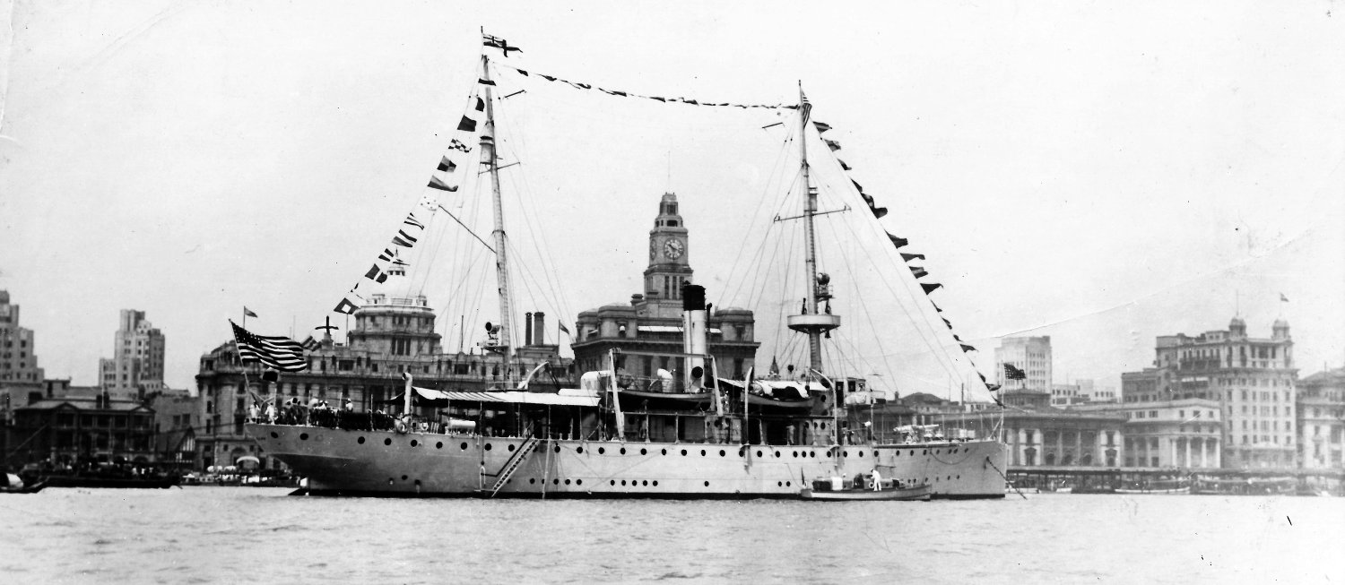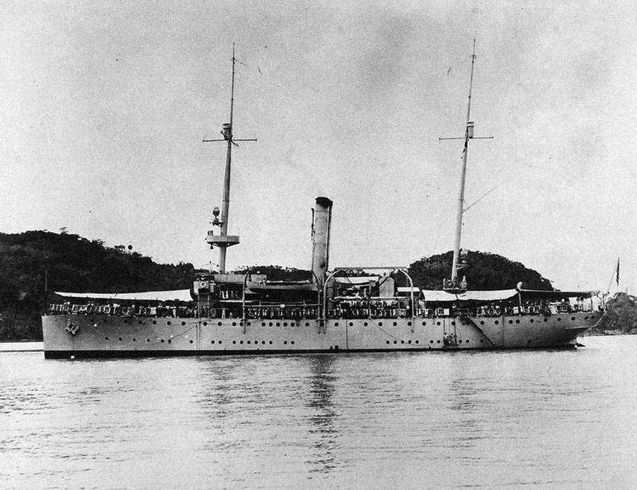456k | Original photo: 1 September 1938 After overhaul Replacement photo: 1 September 1938 Cancao Bay, Cavite, Philippines, after 1938 overhaul. Wooden masts were installed and the stacks were shortened Photo from National Museum of the U.S. Navy |