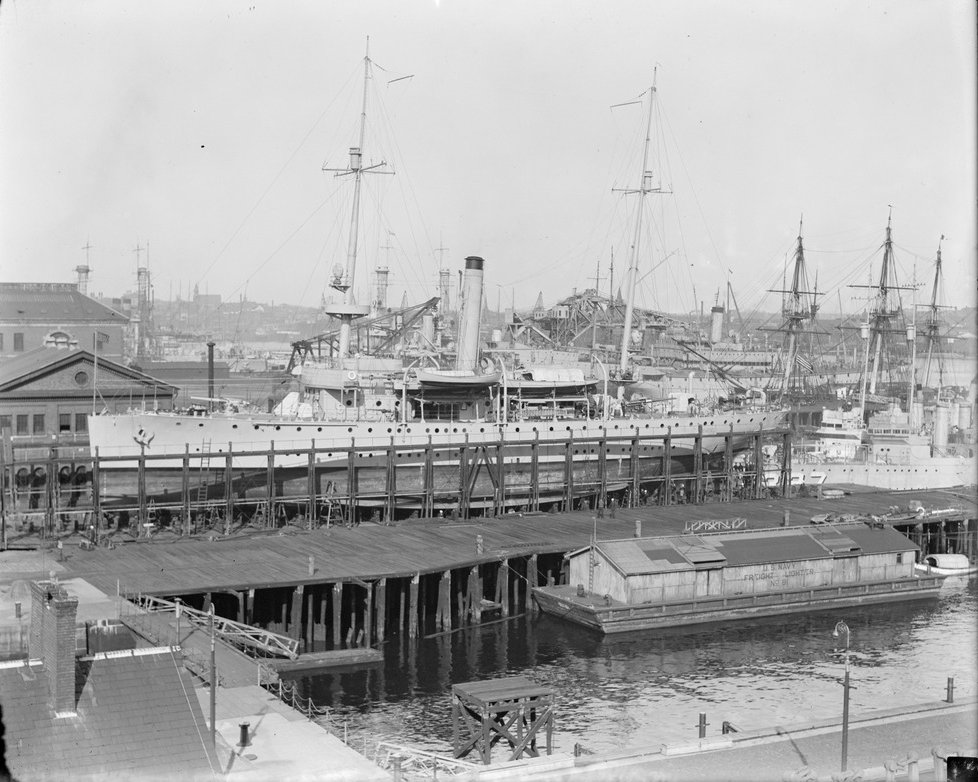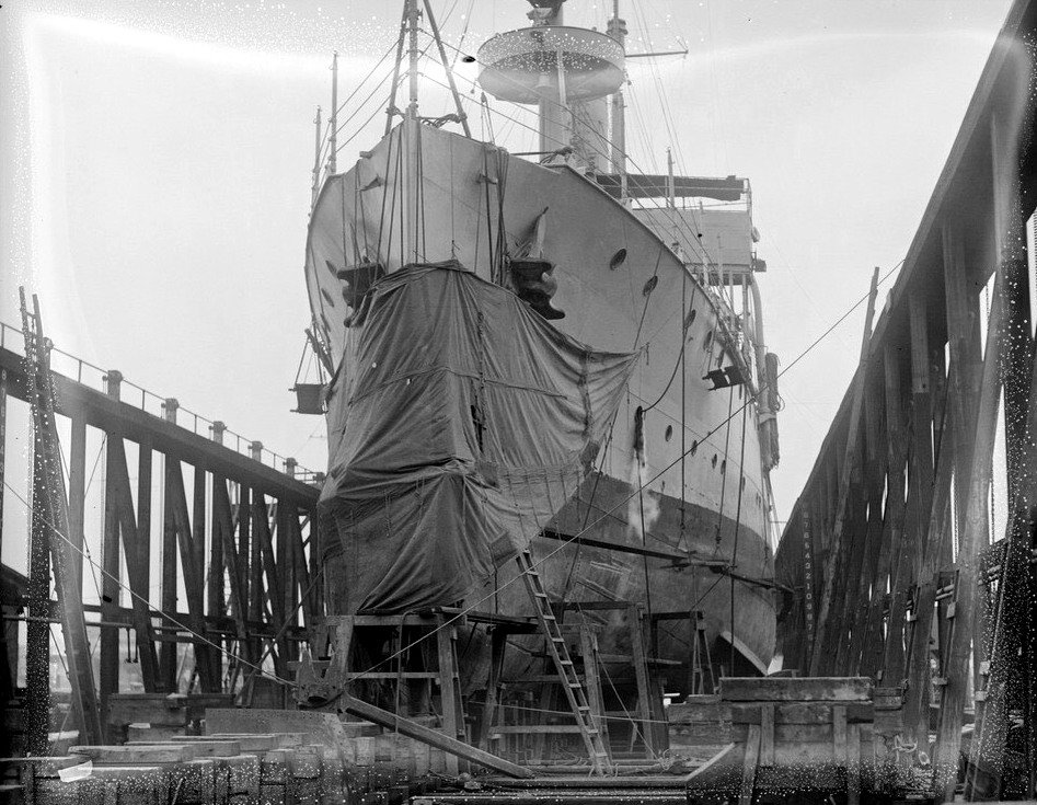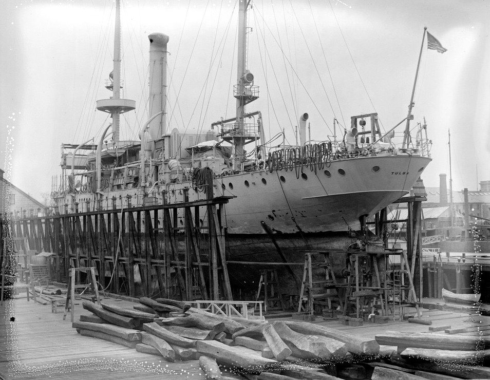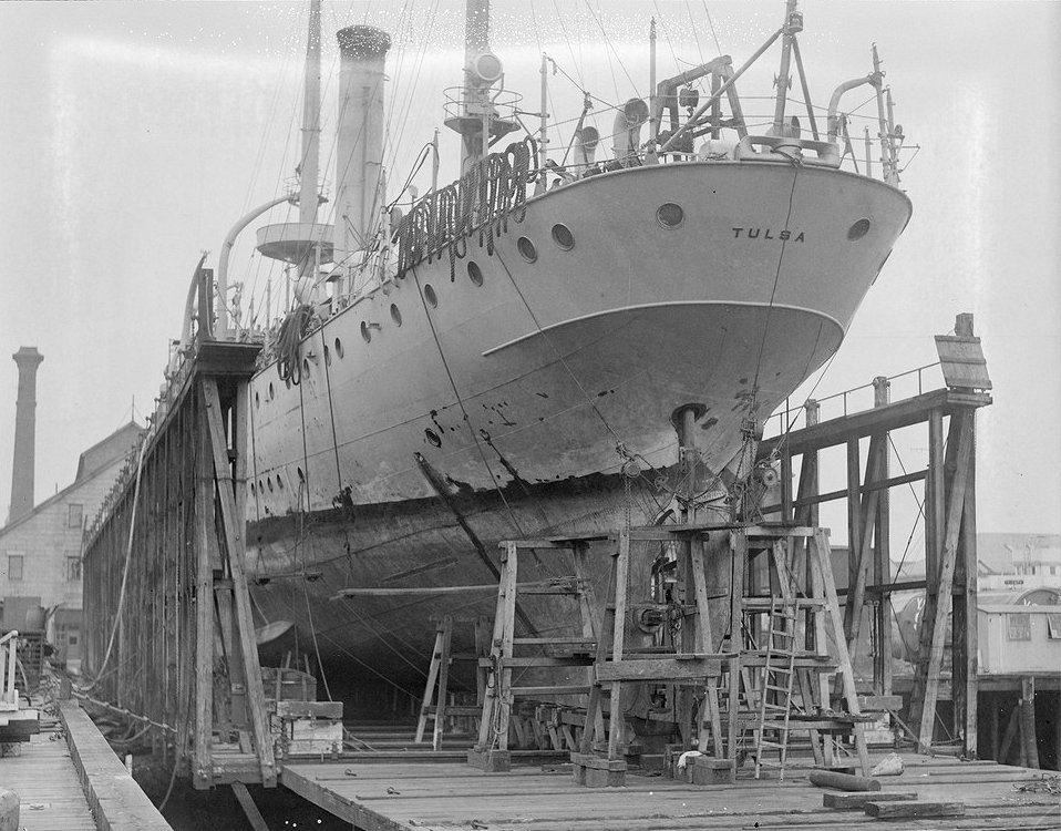 149k | c. 1925 Tulsa at Charlestown Navy Yard on Marine Railway Courtesy of the Boston Public Library, Leslie Jones Collection |