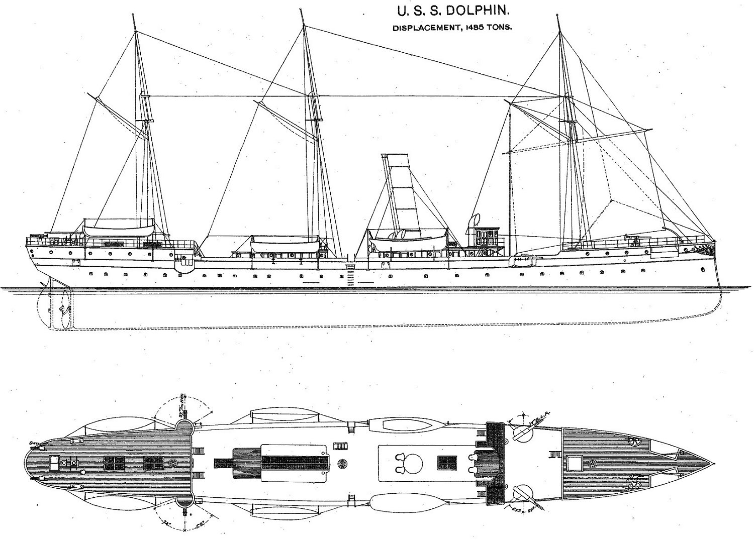 152k | Port side view of the gunboat USS Dolphin, while at Norfolk Navy Yard, Norfolk, Virginia, on 5 February 1892. From the Collection of Secretary of the Navy Benjamin F. Tracy. Courtesy of the Library of Congress. National Museum of the U.S. Navy. | Robert Hurst | |