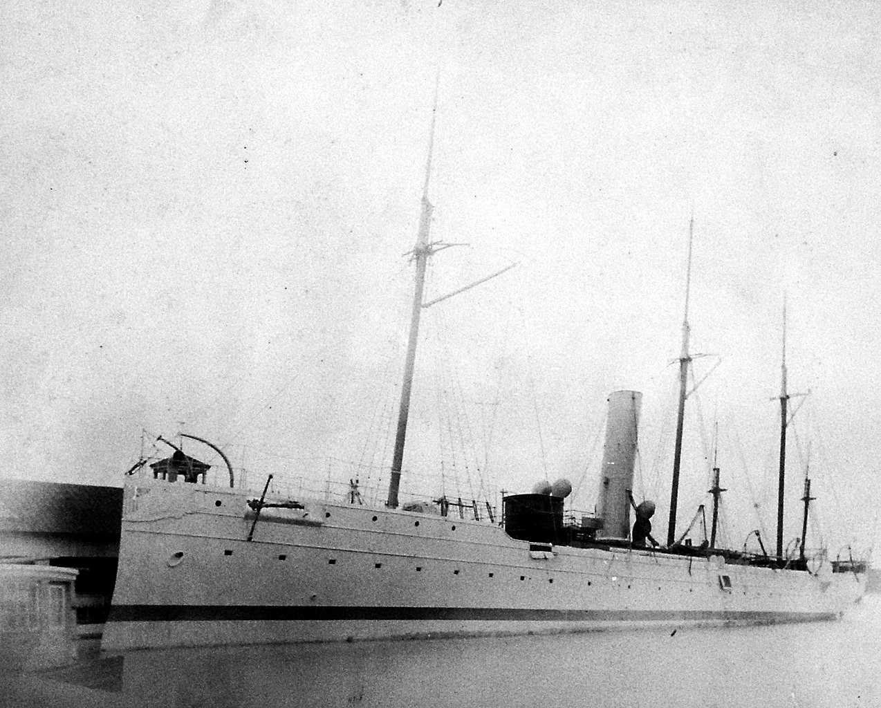85k | Starboard quarter view of the auxiliary dispatch ship Dolphin. The Dolphin was probably part of the naval review