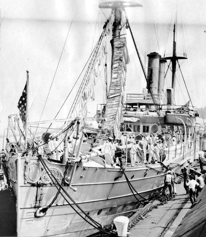 59k | Original photo: At anchor in 1898 U.S. Navy photo NH 60333 Replacement photo: Library of Congress photo LC-D4-21022 from the Detroit Photographic Co. |