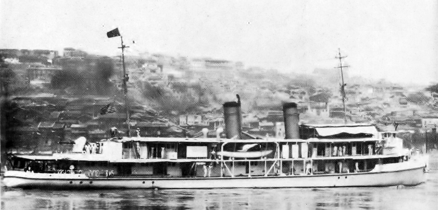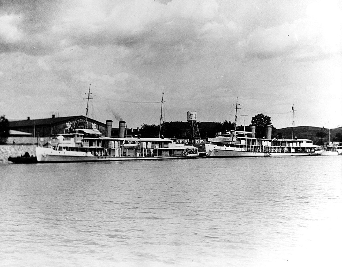 206k | Panay (PR 5), at left, and Luzon, at right at Ichang, China Naval History and Heritage Command photo NH 50464 |