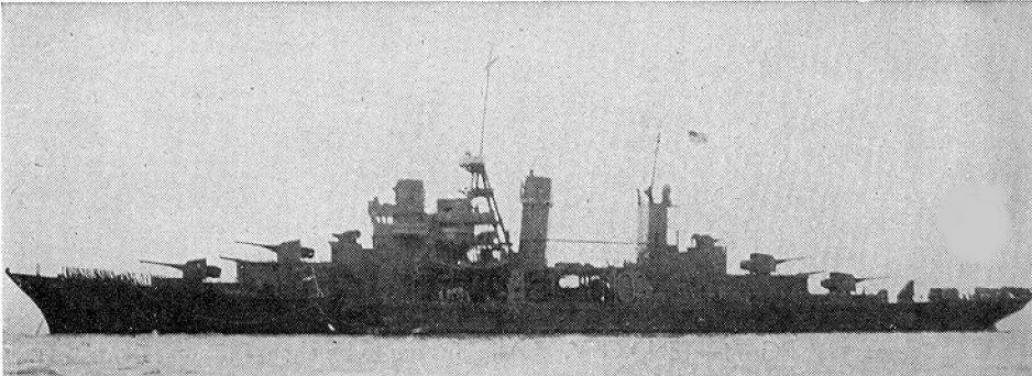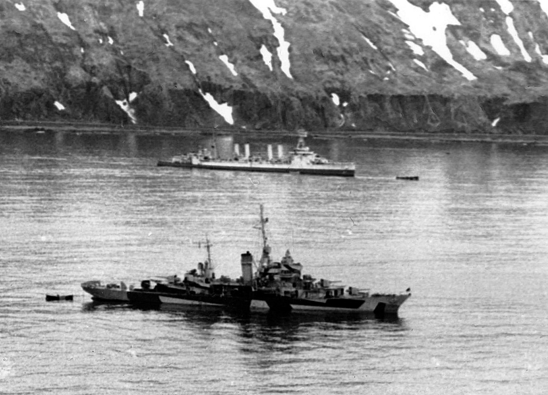 212k | c. Summer 1944 Charleston shown in the Attu, AK anchorage with USS Concord (CL 10) in the distance National Archives photo 80-G-239371 |