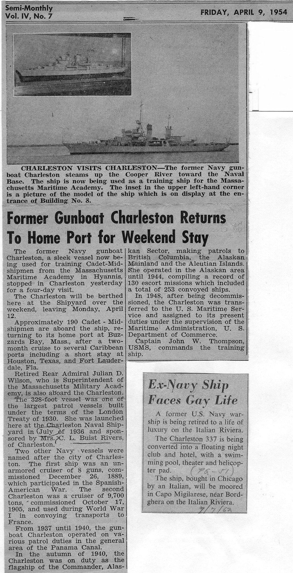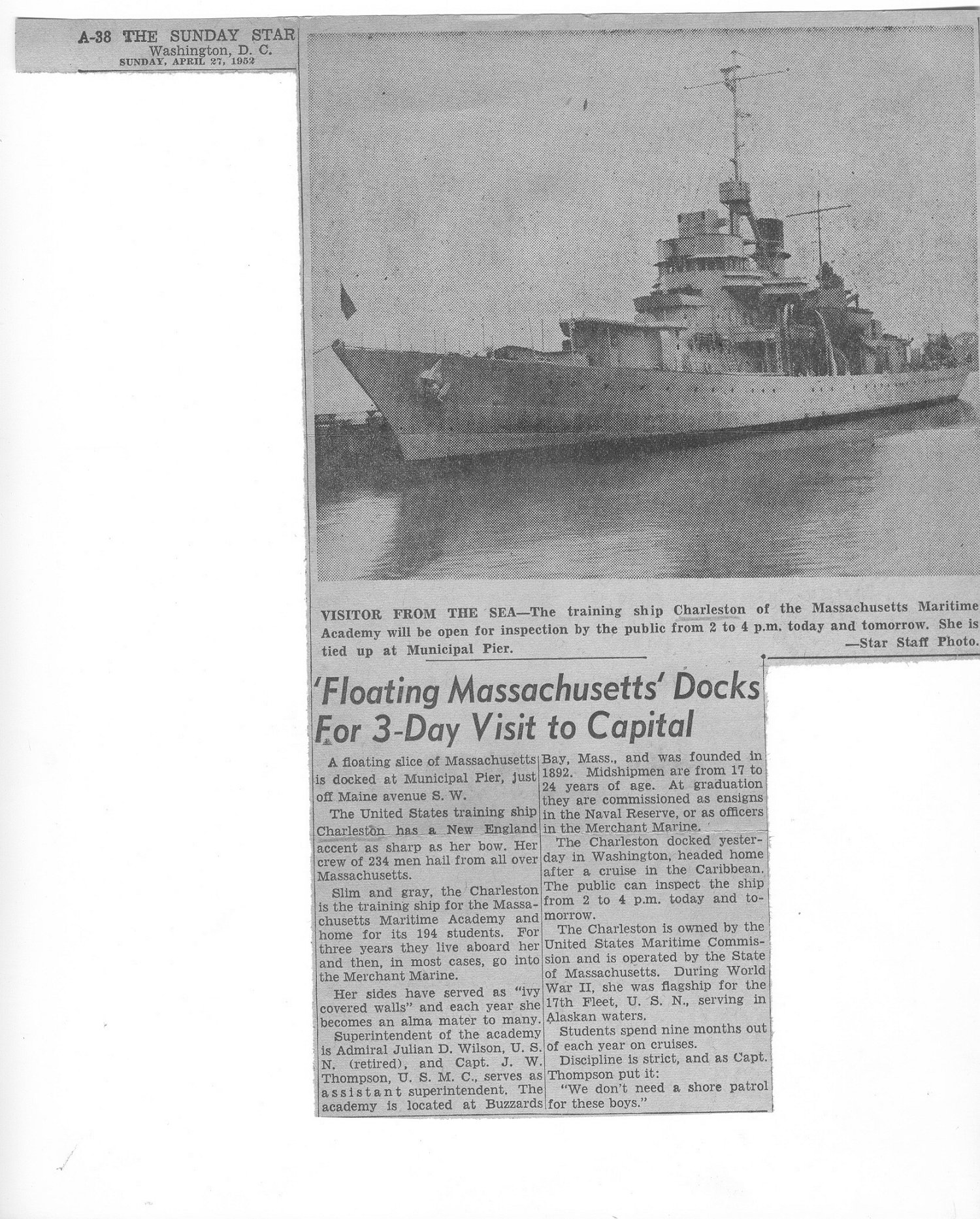 117k | c. 1952 Families visit the USTS Charleston at Massachusetts Maritime Academy Photos by Stanley Doyka |